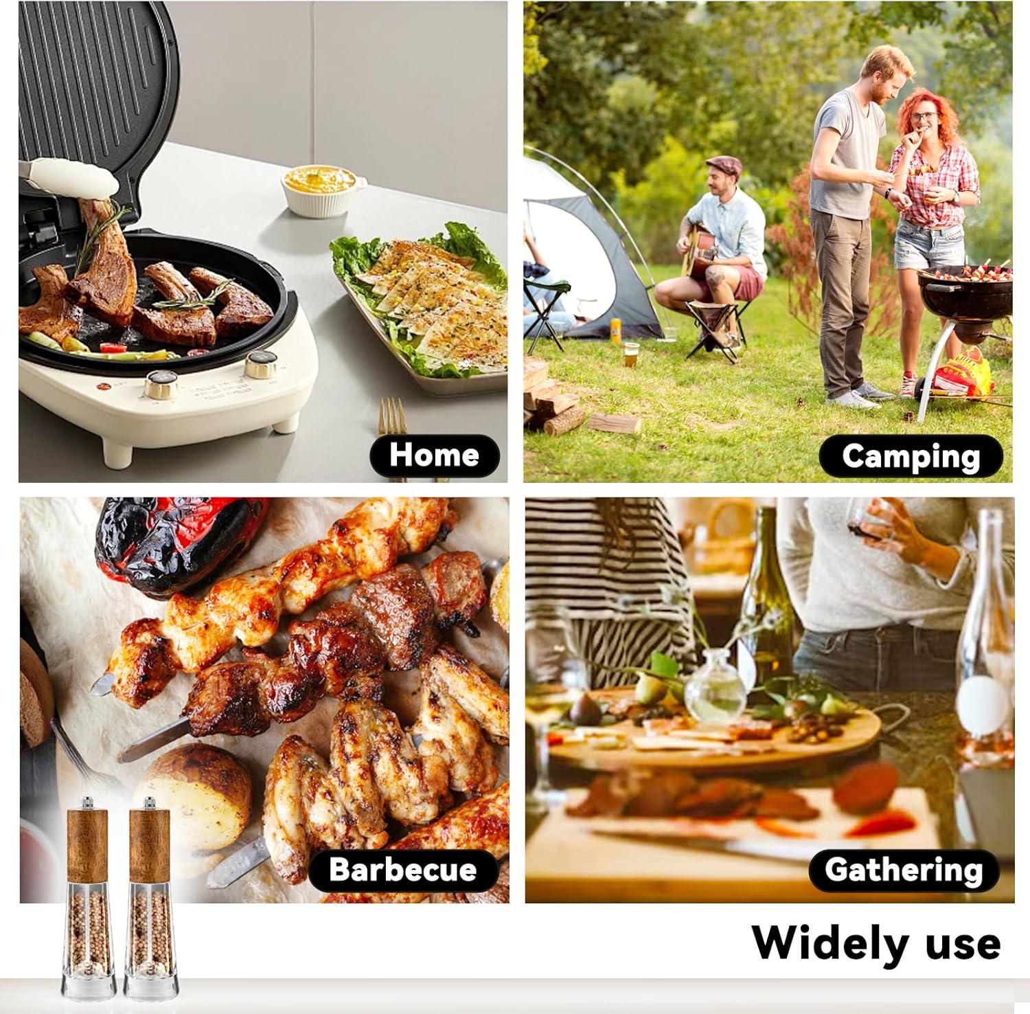 【Large capacity】:Salt and pepper mill size is 8 inches tall and the capacity is 6oz,which can make sure that you don’t have to refill salt grinder frequently,so it’s suitable for no matter the kichen、barbecue or picnic