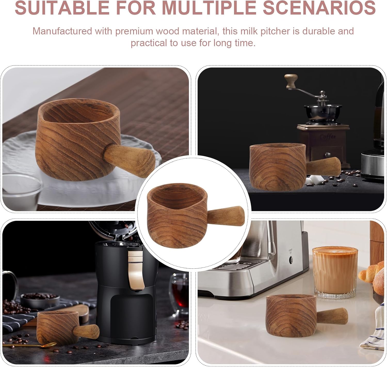 Creative Milk Frothing Cup: This milk creamer pitcher with a wooden handle brings a unique and creative touch to your frothing experience. Perfectly sized, this mini sauce pitcher allows you to achieve the ideal consistency and texture for your milk-based drinks