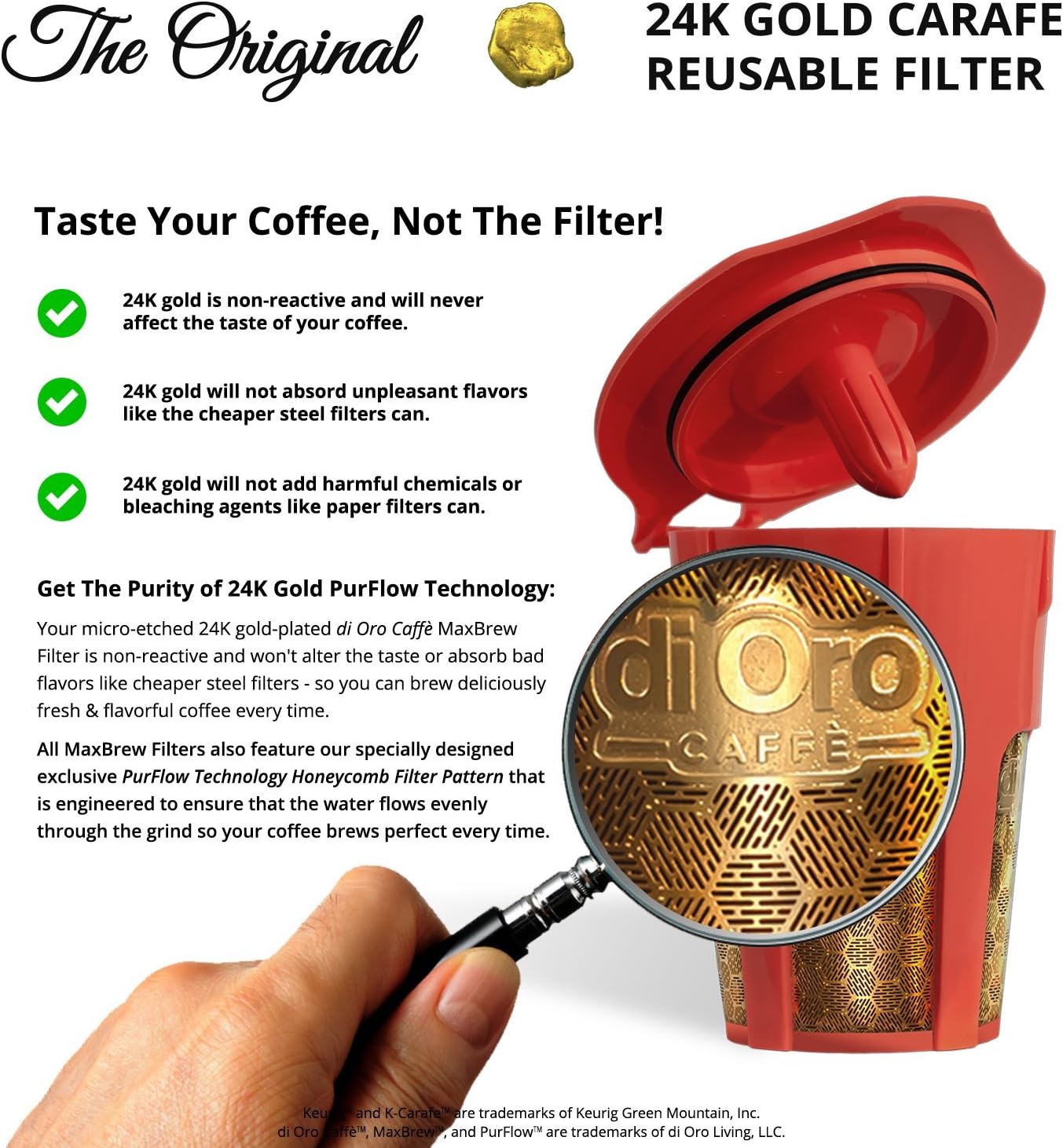 DI ORO – MaxBrew 24K Gold Reusable K-Carafe Filter for Keurig 2.0 – K-Cup Reusable 4-5 Cup Carafe Filter for Keurig 2.0