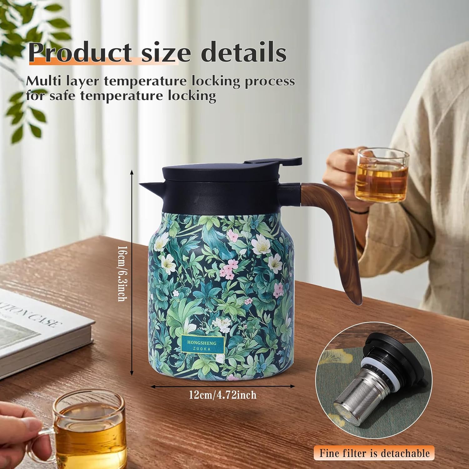 STYLISH VINTAGE FLORAL DESIGN: Add a touch of charm to your kitchen or office with the elegant vintage floral pattern design. This vintage floral teapot thermos is not only functional but also a stylish addition to your decor. Perfect for tea lovers who appreciate both beauty and practicality, it makes an ideal gift for holidays, birthdays, or any special occasion.