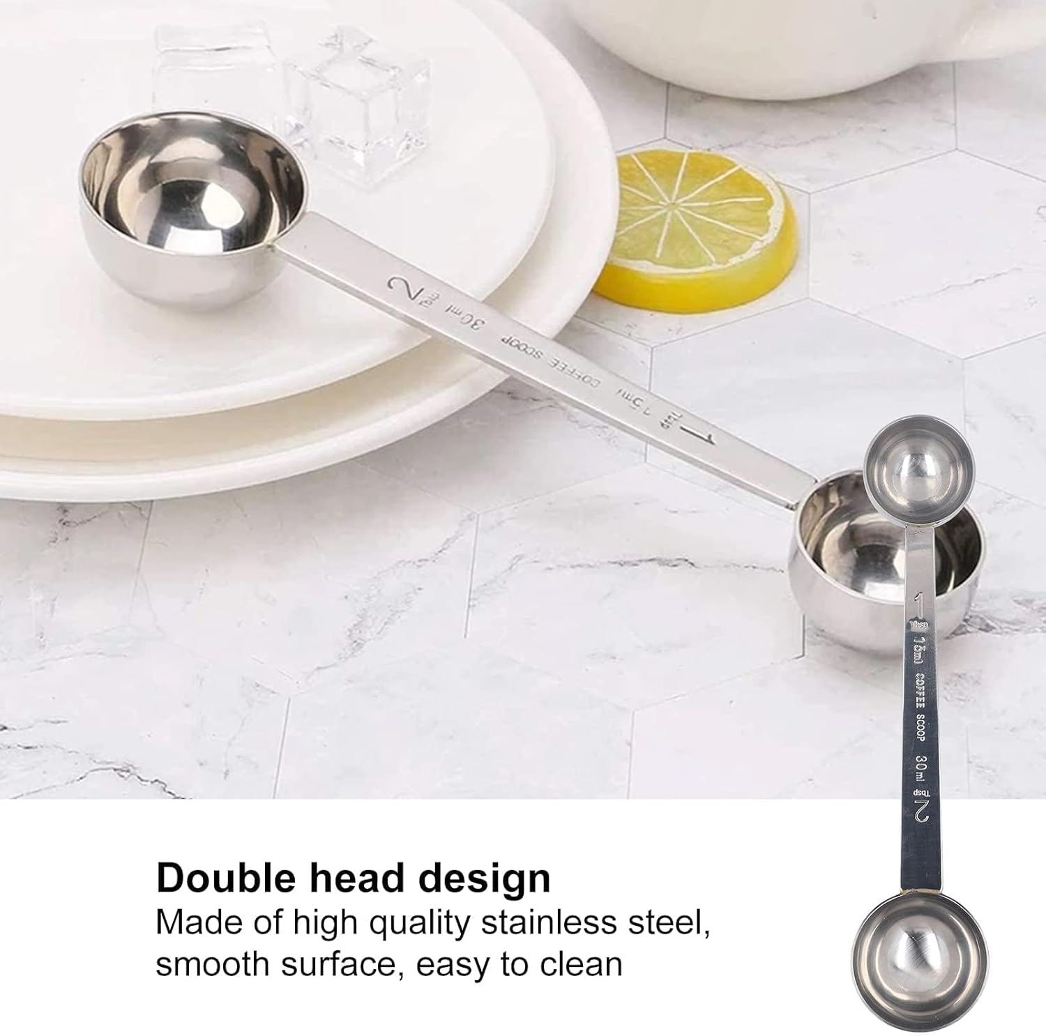 MATERIAL: Double coffee spoon is made of stainless steel. With mirror polished, tablespoon scoop for powder are not easy to fade or damage, sturdy and stable. Its benefits are everywhere, making your goal easy.