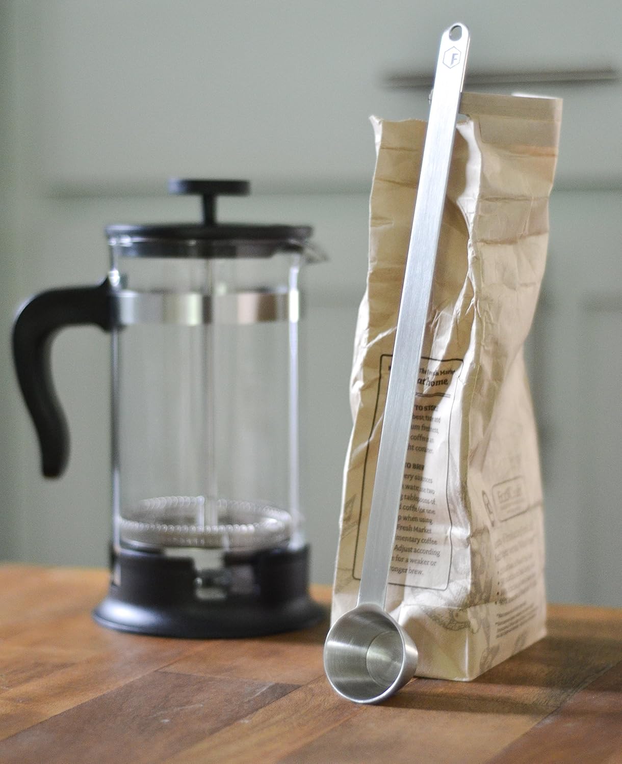 I like being able to reach the bottom of coffee bags without having to stick my hand halfway down the bag. Why did the engineer (engineered in the USA) not have the common sense to engrave 1tbsp. on the handle, but engraved a circle with an F instead? Otherwise, the handle is very sturdy and won’t bend unless it’s done on purpose. Is it an accurate measurement? I don’t know if it is, and find it unnecessary to be that precise for home use.