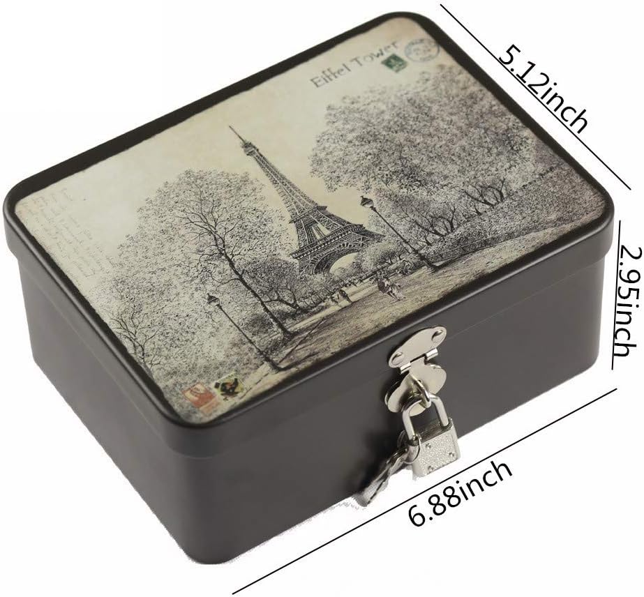★DURABLE AND SAFE MATERIAL – Made of food grade Tinplate, anti-rust, anti-corrosion, anti moisture,Come with 1 lock 2 keys, convenient and practical.