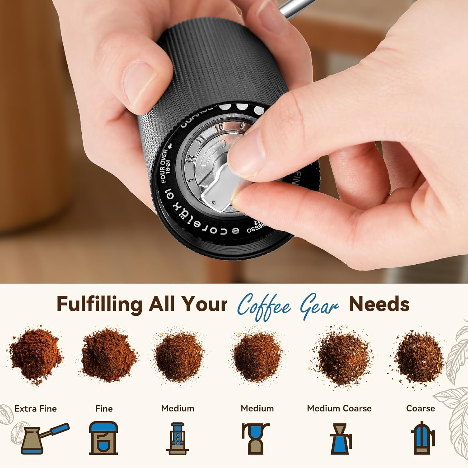 Precision Grinding Technology: The ECORELAX Manual Coffee Grinder features an adjustable setting that allows you to control the coarseness of your grind, ensuring the perfect consistency for espresso, French press, or any other brewing method