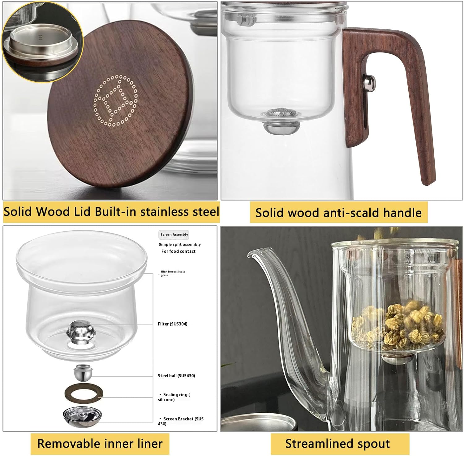 Removable design, comfortable to hold Solid wood lid and handle, heat-resistant and heatproof