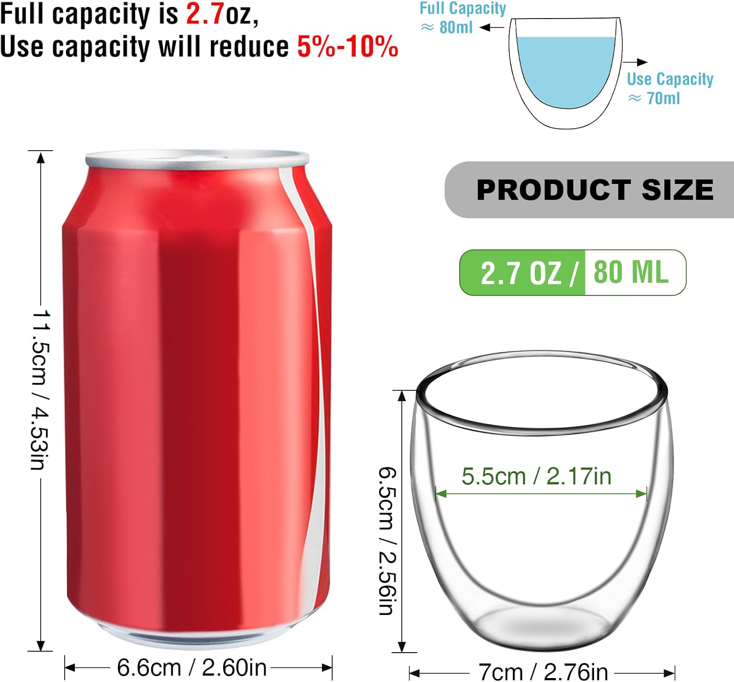 The expresso cups can resistant temperature between -20℃/-4℉to 150 ℃/302℉, ideal for all cold and hot drinks. Double Wall of the espresso shot glass cups ensures your safety when touching cold or hot drinks, also makes it an insulated espresso cup to keep the temperature of drinks for longer time