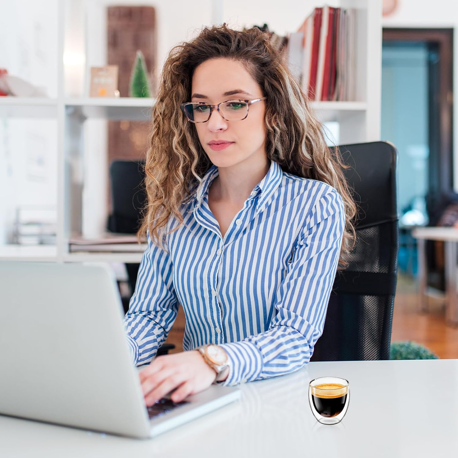 Having these glasses adds to the look of my coffee bar. Makes me look like a true barista although I have no idea what Iâm doing but Iâm learning lol. These glasses are very light and the double wall feature looks really cool. I do feel that I have to be careful with these as they feel thin and could break. The glass itself is slightly cloudy so I was a bit bummed by that. Iâm not able to get it as clear as I want.