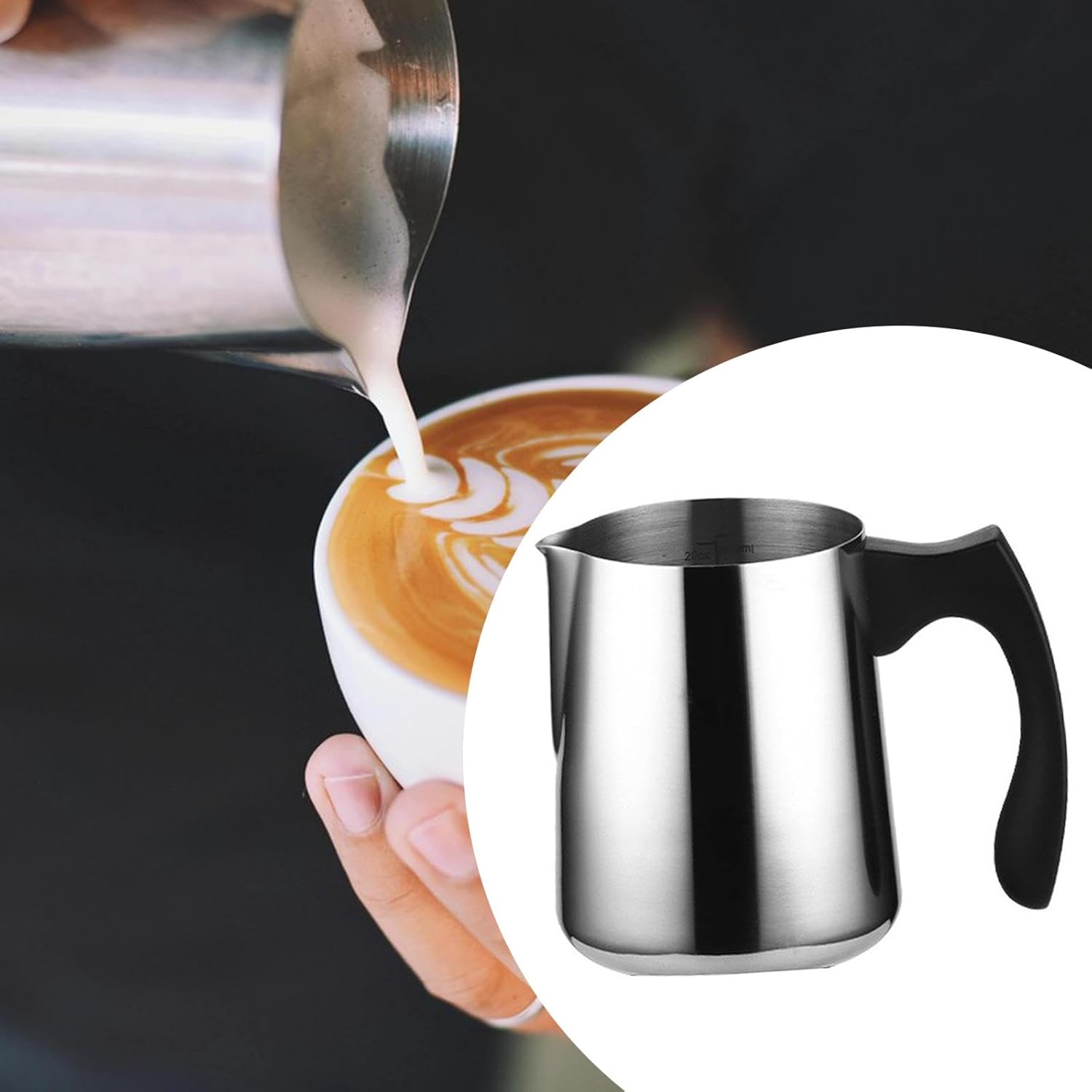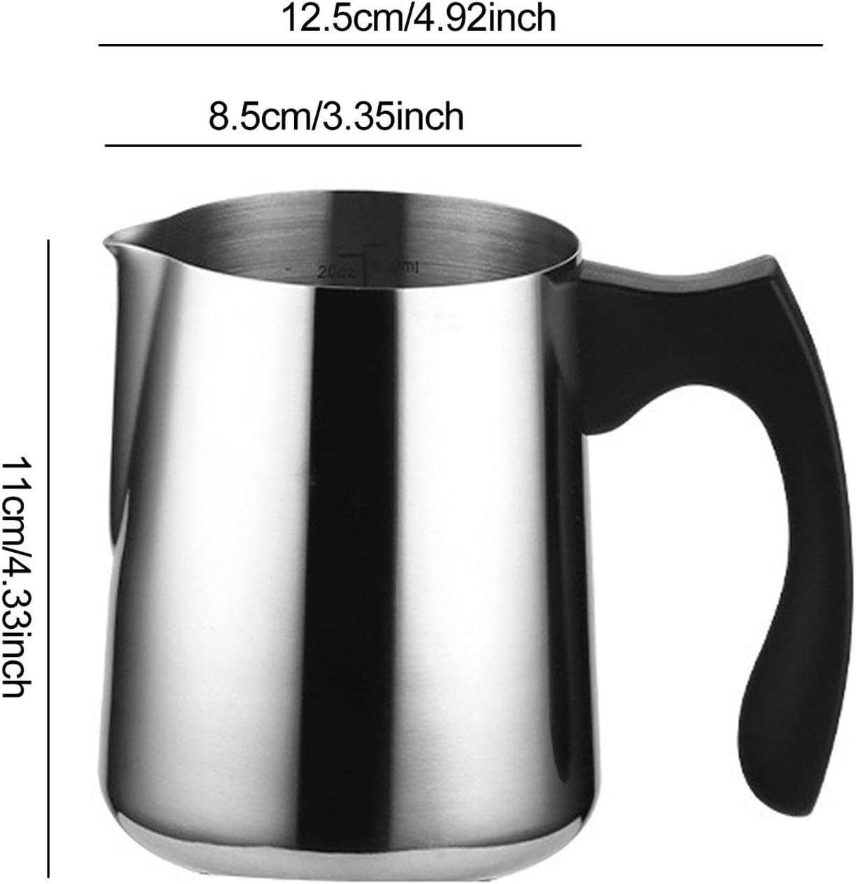 – 【Material】: Milk Frothing Pitcher Jug is made of stainless steel, with a polished mirror finish on the outside to ensure a smooth touch without scratching your hands