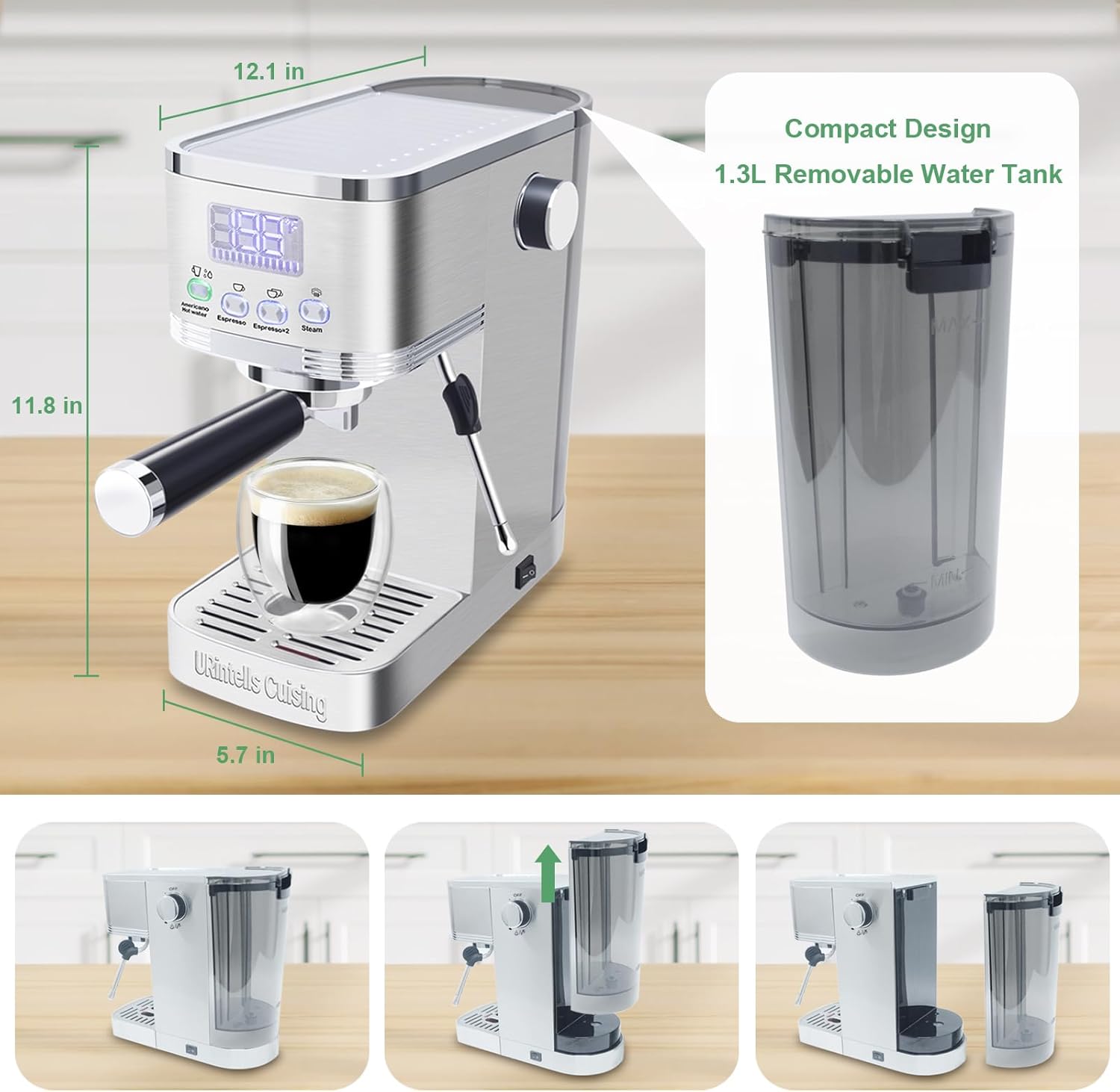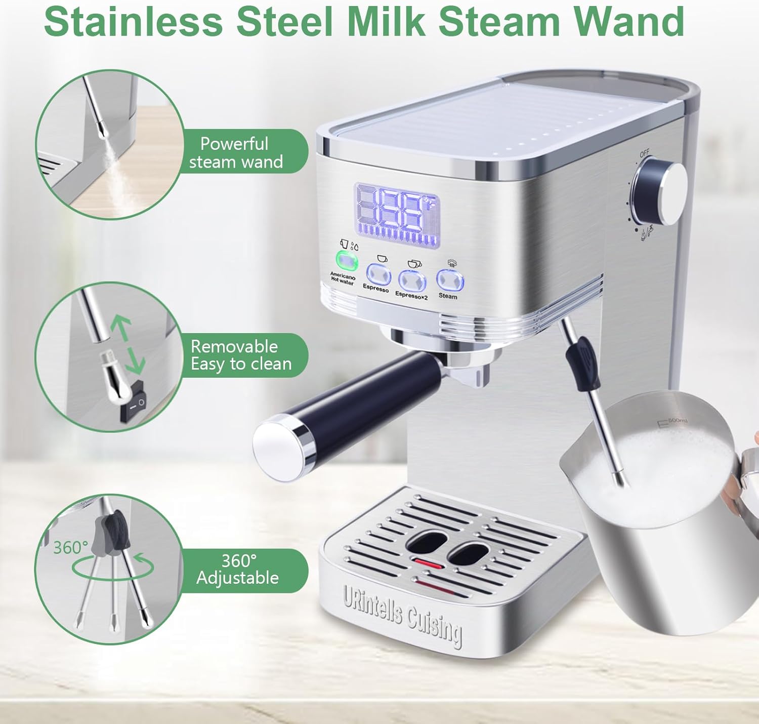 Worry-Free Shopping Experience: URintells Cuising cappuccino machine with milk frother comes with detailed instructions. If you have any questions about operation, you can refer to the relevant instruction videos on our product page, or contact us via Amazon. If you unfortunately receive a used or unclean cappuccino maker, please connect with us and we will do our best to solve this problem for you. For more instructions about our coffee espresso machine, you can refer to our product page or the user manual in the package