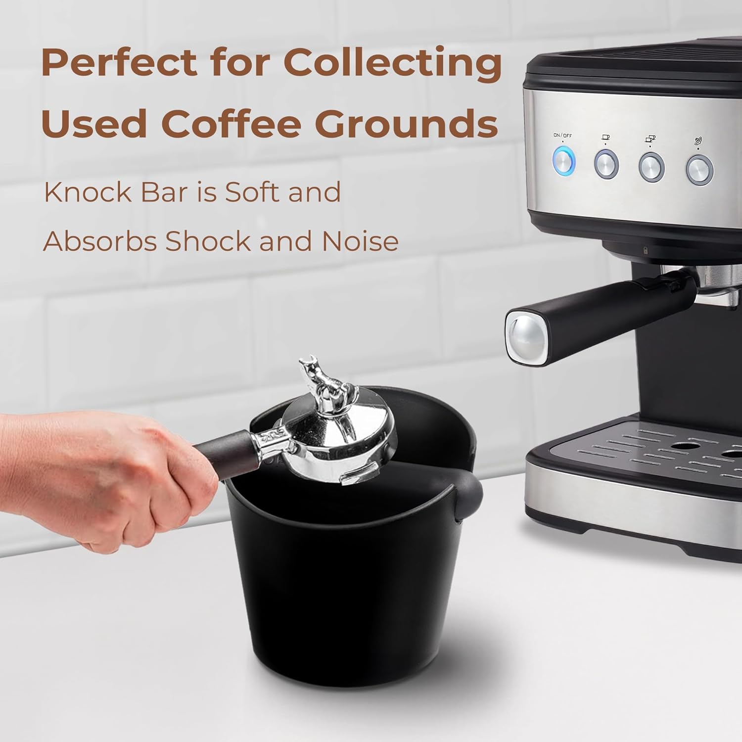 ☕【Shock Absorption and Noise Reduction】: Knock bar on the knock box espresso is soft and absorbs some of the impact and noise when knocking the portafilter , not only will it make you feel more comfortable, but it will also protect you and your family from noise.