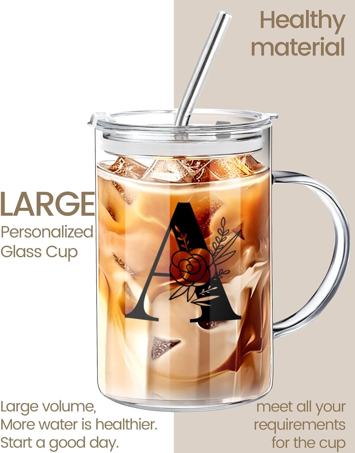 1 review for Extra Large Glass Drinking Cup With Lid Straw Teacher Appreciation Gifts Personalized Mug Gift For Her Glass Tumbler Initial Cup Retirement Gift For Woman Teacher Must Have Present Work Essentials