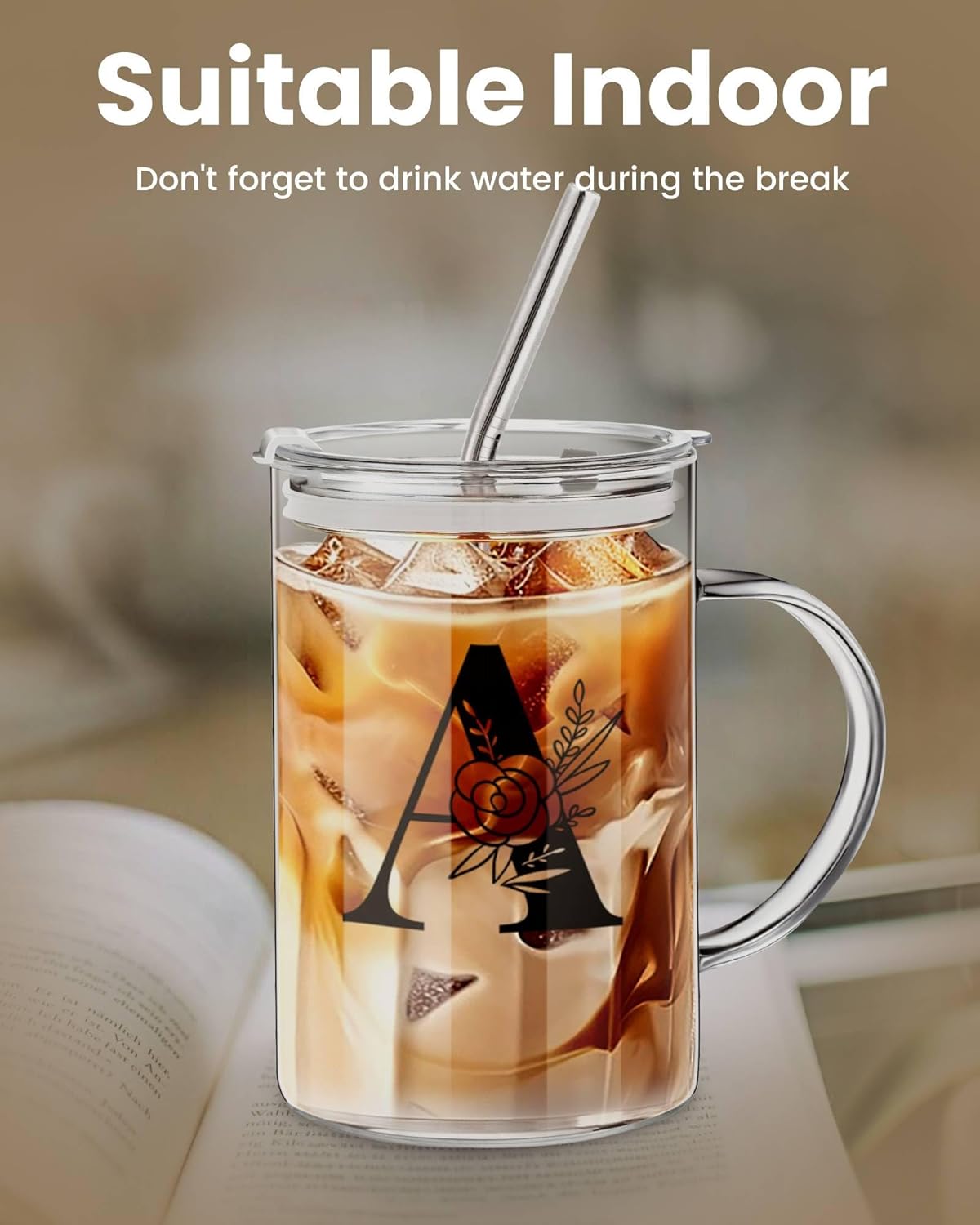 Extra Large Glass Drinking Cup With Lid Straw Teacher Appreciation Gifts Personalized Mug Gift For Her Glass Tumbler Initial Cup Retirement Gift For Woman Teacher Must Have Present Work Essentials