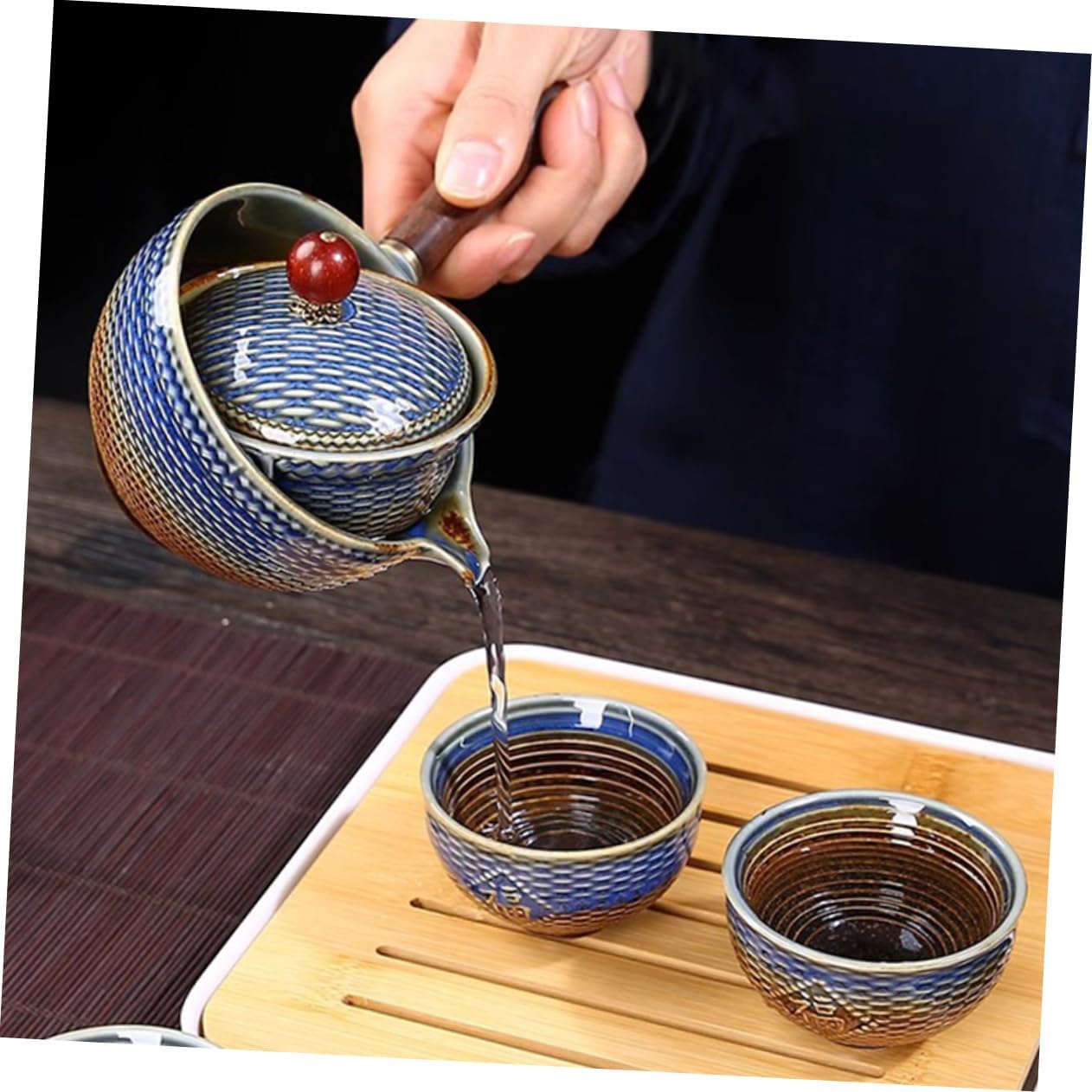Rotatable teapot teacup kit:the exquisite craftsmanship and elegant appearance of the tea cup make it an ideal tea lovers, adding a touch of sophistication to their tea-drinking experience,rotating teapot