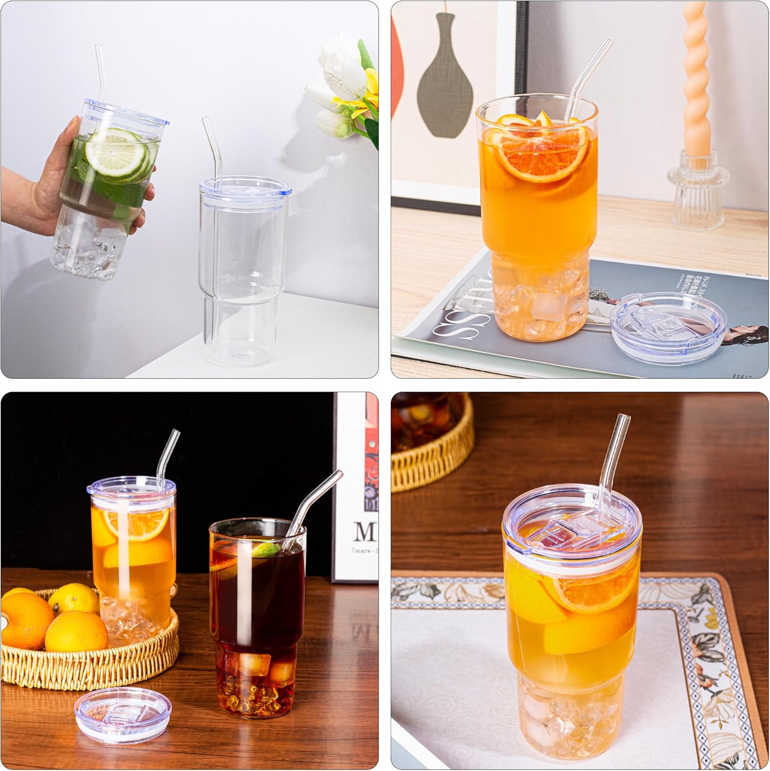 Fashion appearance: The transparent glass body allows you to clearly see the drinks in the cup, and at the same time, the simple design makes it a fashion accessory in your daily life. Whether you go out at home or out, you can show your taste.
