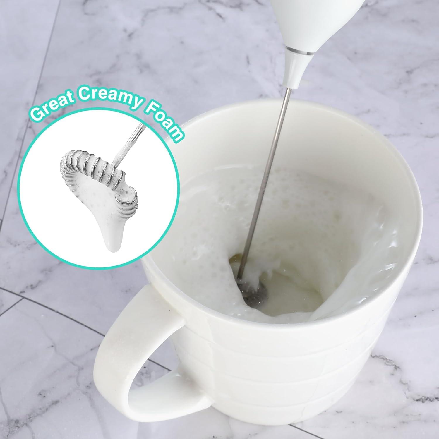 Ideal for Coffee Enthusiasts: Skip the coffee shop run and enjoy lattes, cappuccinos, matcha, hot chocolate, powdered drinks, or iced coffee at home with this milk frother, our handheld frother blends a lightweight build with an ergonomically designed soft-touch. This electric frother embodies unmatched convenience, serving as an ideal gift for friends and family. Let them relish the ease of preparing delightful homemade chocolate or cappuccino beverages