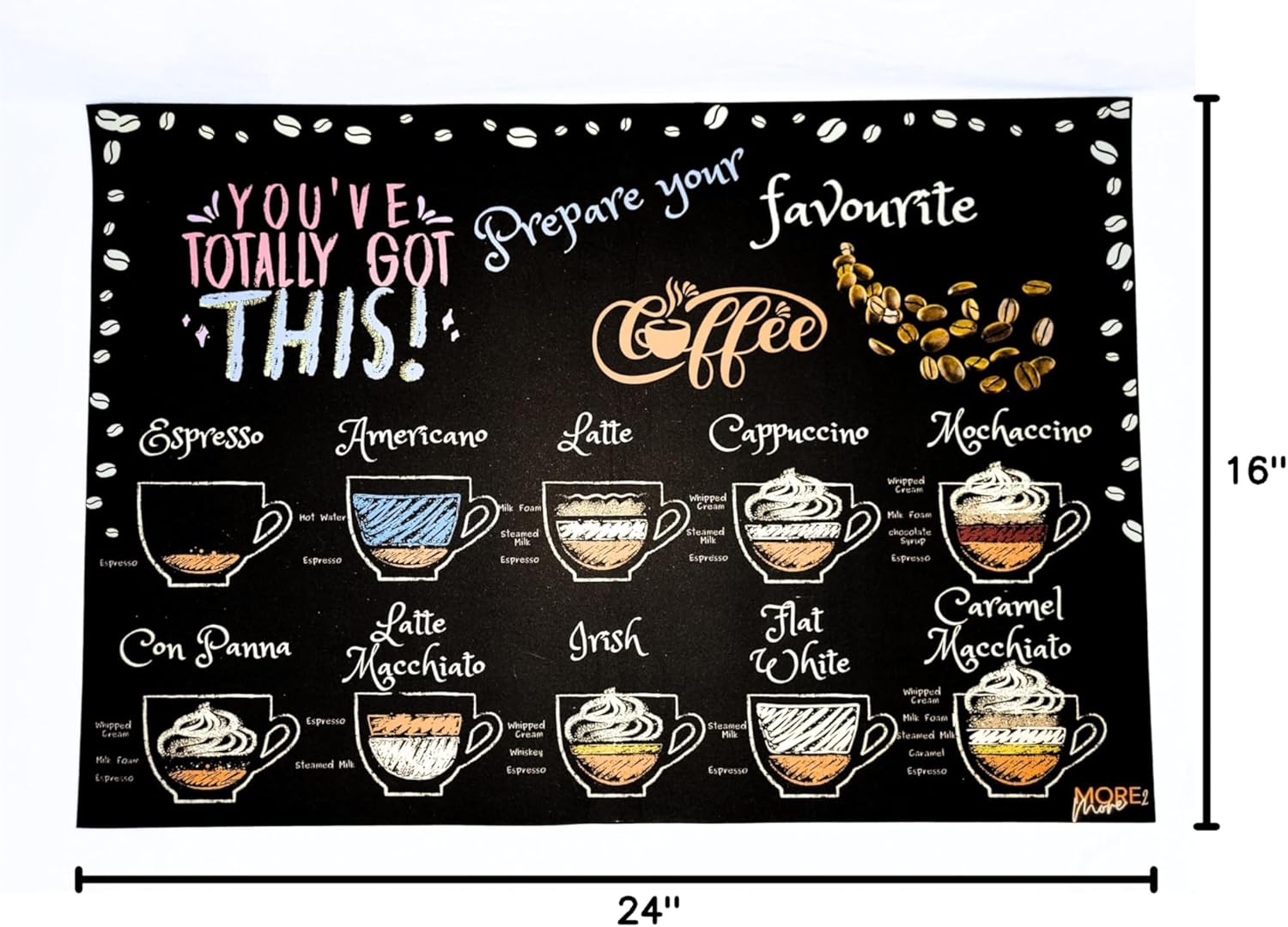High Absorbent Coffee Mat 23.5” x 16” Diatom Mud & Rubber, Anti Slip and Heat Resistant Mat, Dish Drying Mat for Kitchen, Coffee Maker, Boiling Water and More. (Coffee Types, 23.5″x16″)