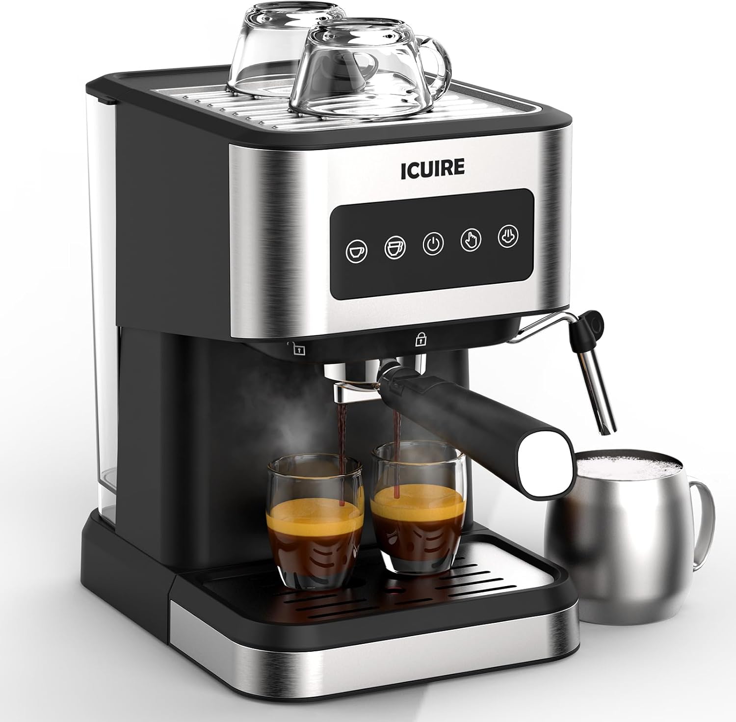 ICUIRE 20 Bar Espresso Machine, 1.5L Water Tank Coffee Maker Machine, Latte with Milk Frother Steam Wand, Cappuccino/Macchiato Maker, Detachable Pallet, 1050W Rapid Heating, Stainless Steel