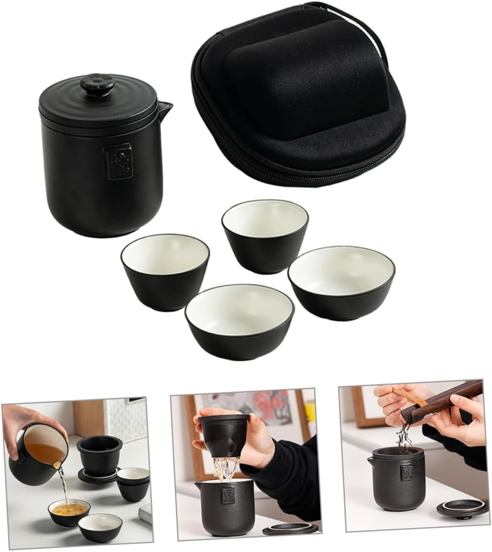 IMIKEYA 1 Set Travel Tea Set Teapot Cups Mug Tea Pots Chinese Tea Brewing Kit Cup for Couple Chinese Kung Fu Tea Ceramic Teacup Kit Kung Fu Tea Accessories Black Polyester