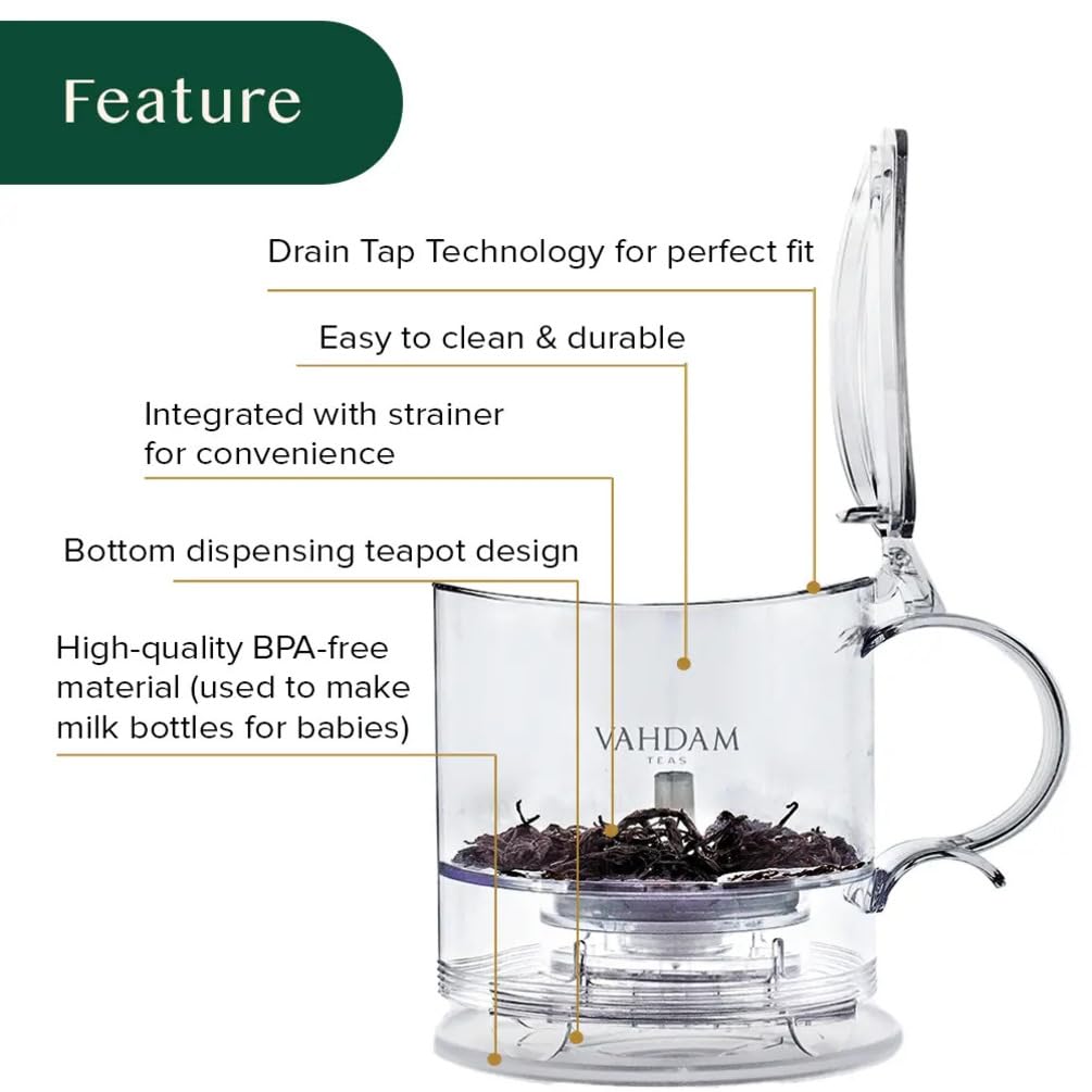 Easy to use, easy to clean! Very impressed how much more flavor comes from my favorite teas versus my old teapot! I was really surprised how good the tea tastes considering the teapot is plastic.I also enjoy the way it dispenses from the bottom when I set it on top of my cup,.. makes it more convenient.I truly love this more than I thought I would, it’s awesome!Thank You VAHDAM ð!I’m now excited about trying your variety of teas!