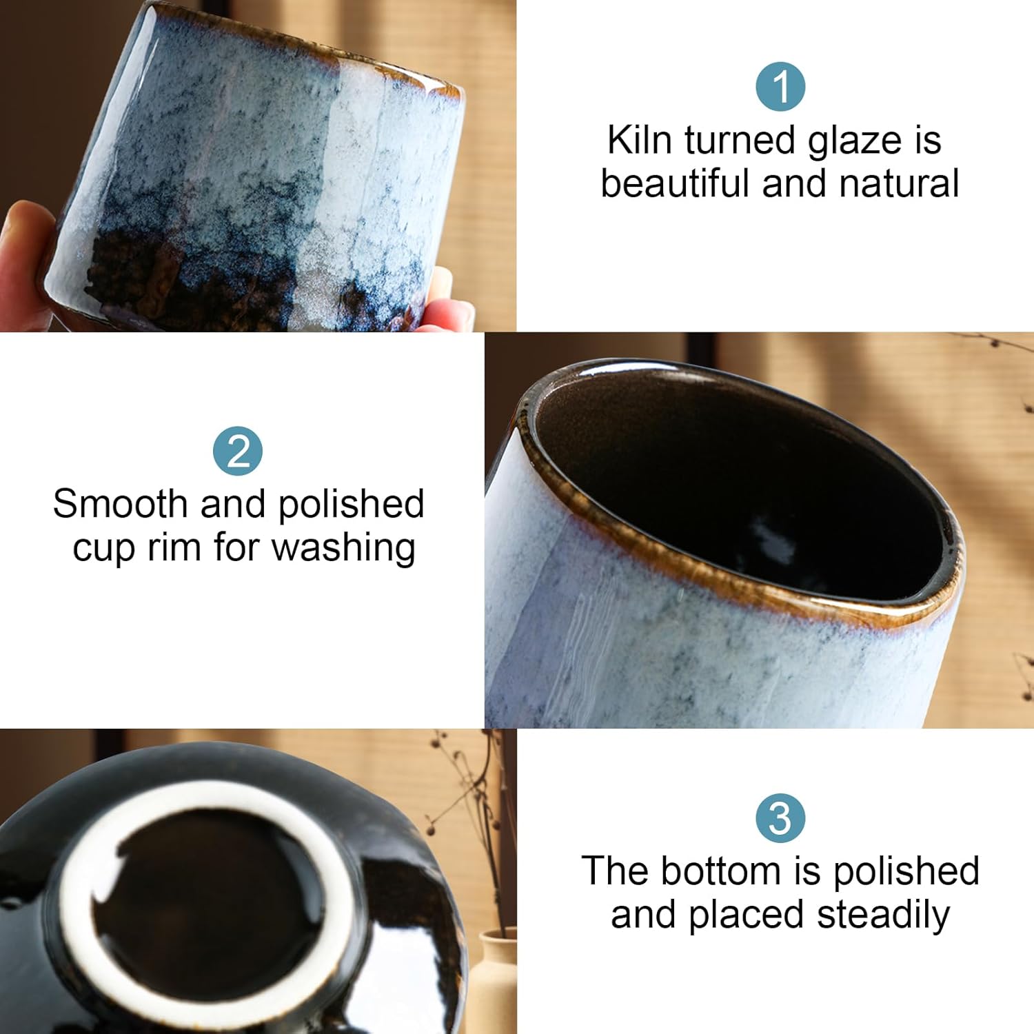 Unique: Kiln glaze is an artistic glaze. It is burned at a high temperature of about 1300 degrees in the kiln, forming a stable state.The surface of each ceramic cup has subtle differences, making each tea set a unique and irreplaceable treasure