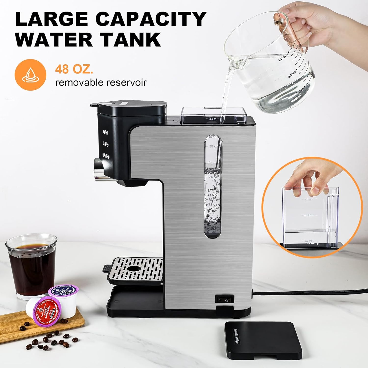 8 reviews for K Cup Pod Coffee Maker,One Cup Coffee Machine Brew 6-14 oz Ground Coffee Maker,Compact Design 48-oz,Single Serve,2 in 1, Black..