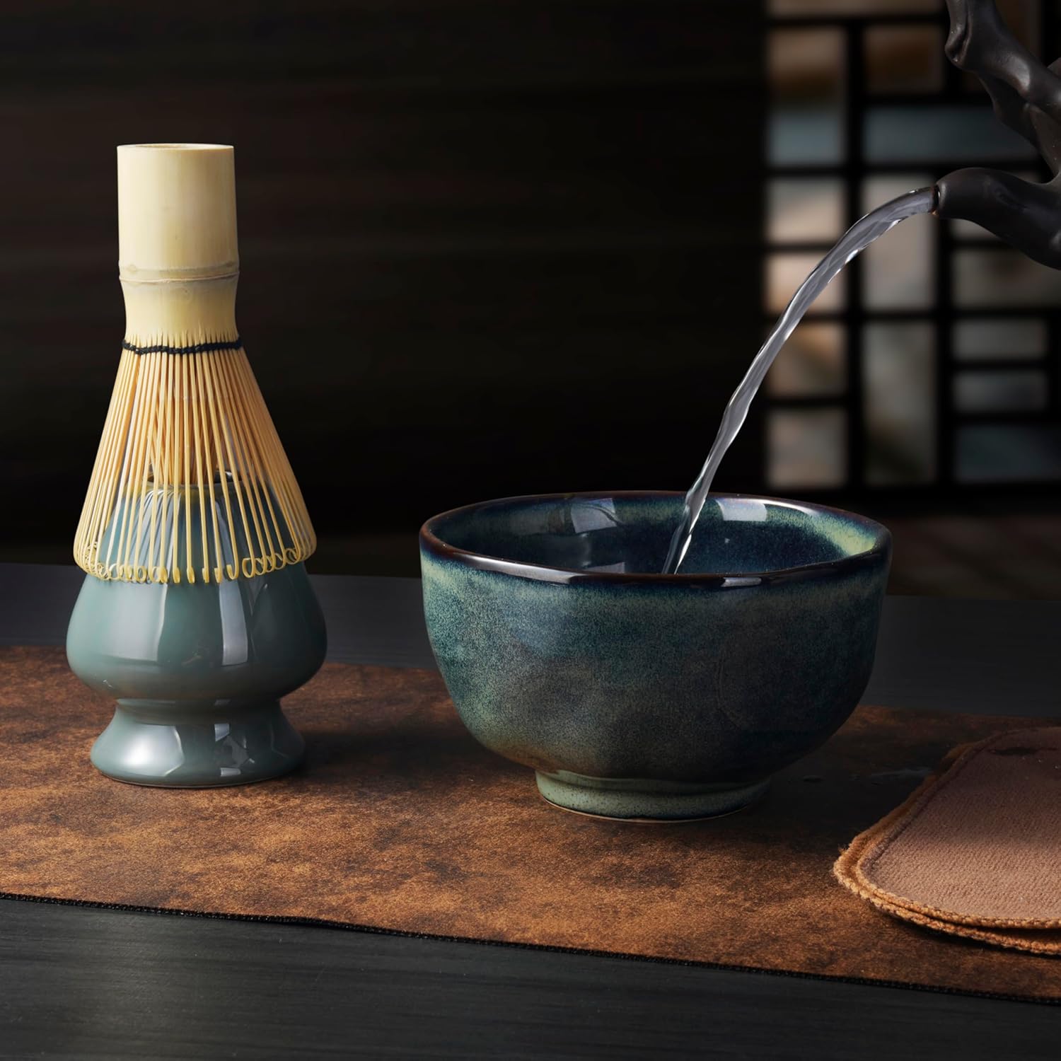 Products include:100 Prong Matcha Whisk, Whisk Holder,Traditional Scoop,Tea sifter,and Ceramic Matcha Bowls