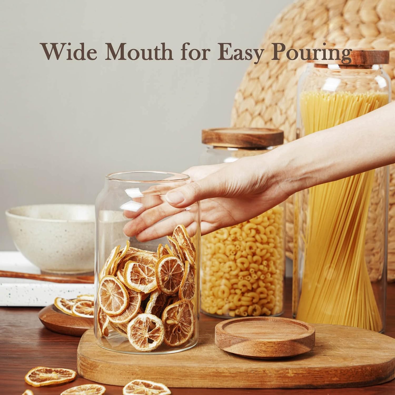 Labina Glass Storage Container Airtight Food Jars Kitchen Canister with Wood Lids, 33 Oz Wide Mouth Pantry Organization Glass Jar for Flour, Sugar, Cookie, Spagetti, Nuts and Candy