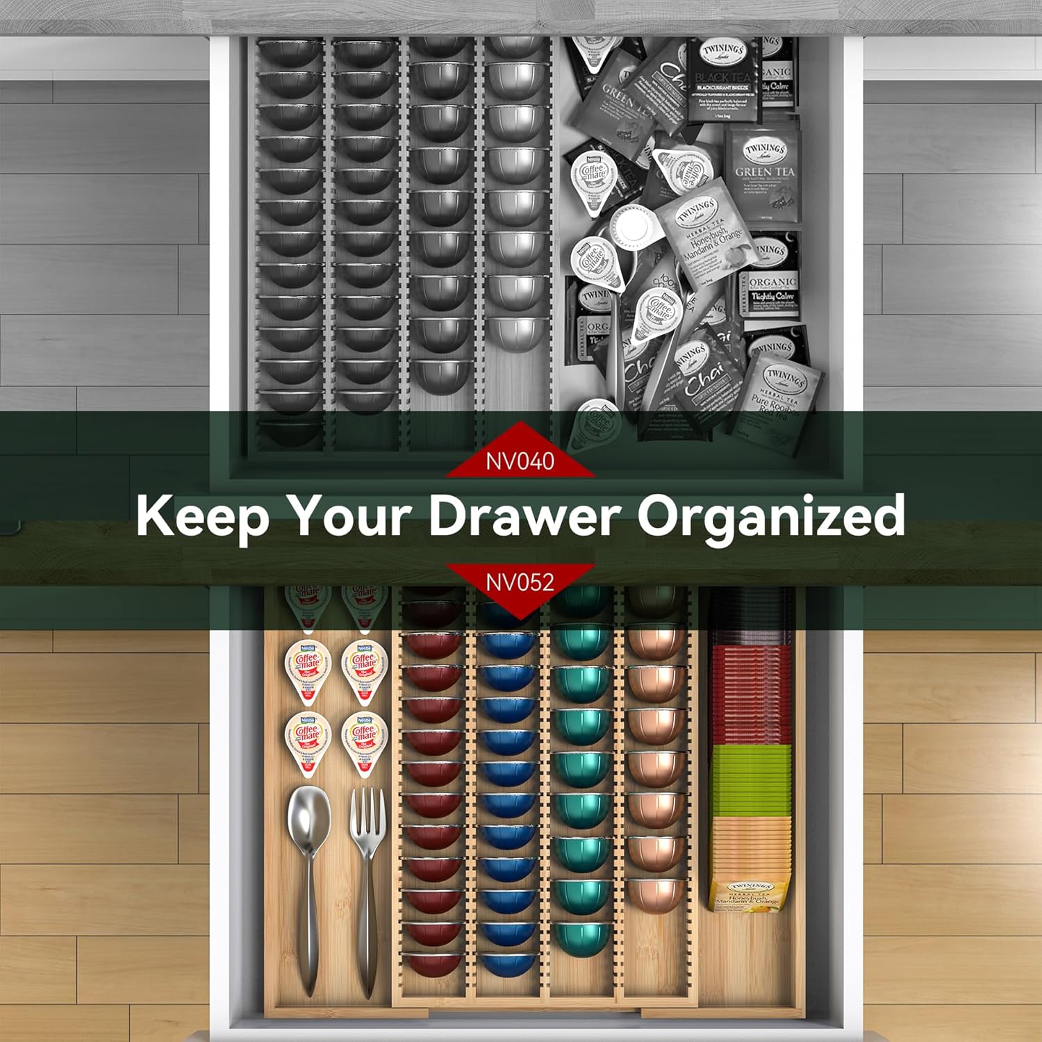 【 】The drawer organizer can be used not only to store coffee pods, but also to store silverware, coffee tools, tea bags and other small items