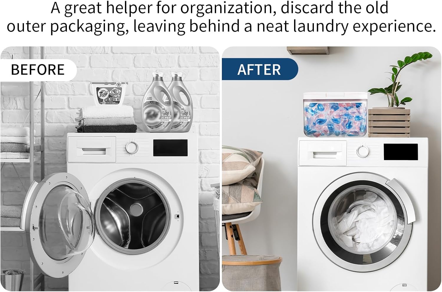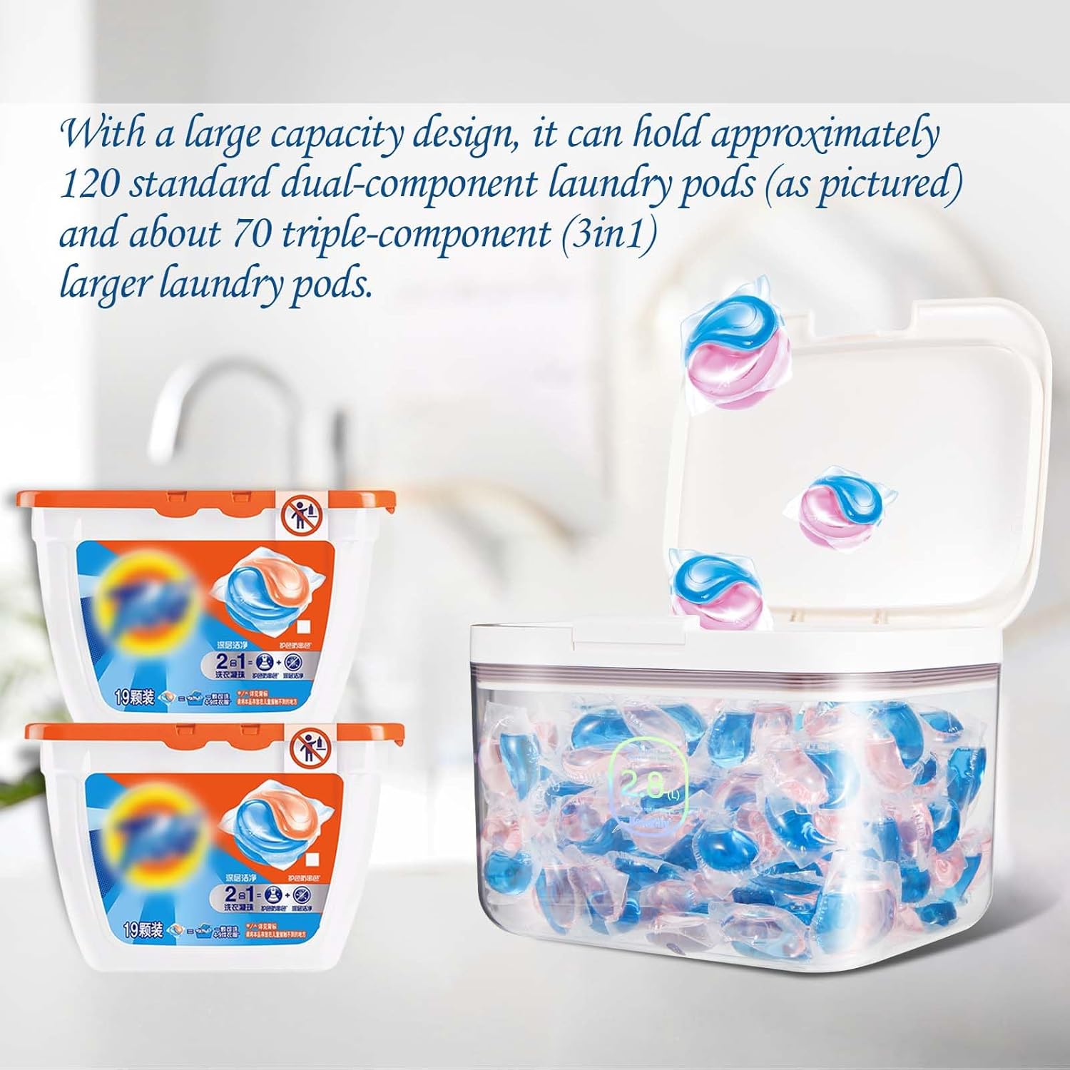 [LAUNDRY PODS CONTAINER WITH LID] – Our laundry pod holder storage container with lid is elegantly designed and features a self-pop open design that allows you to open and fill with ease. This laundry pod storage container has a transparent body so you can easily check the contents inside, and the waterproof and odor-proof seal design can keep your laundry soap pods fresh and tidy.