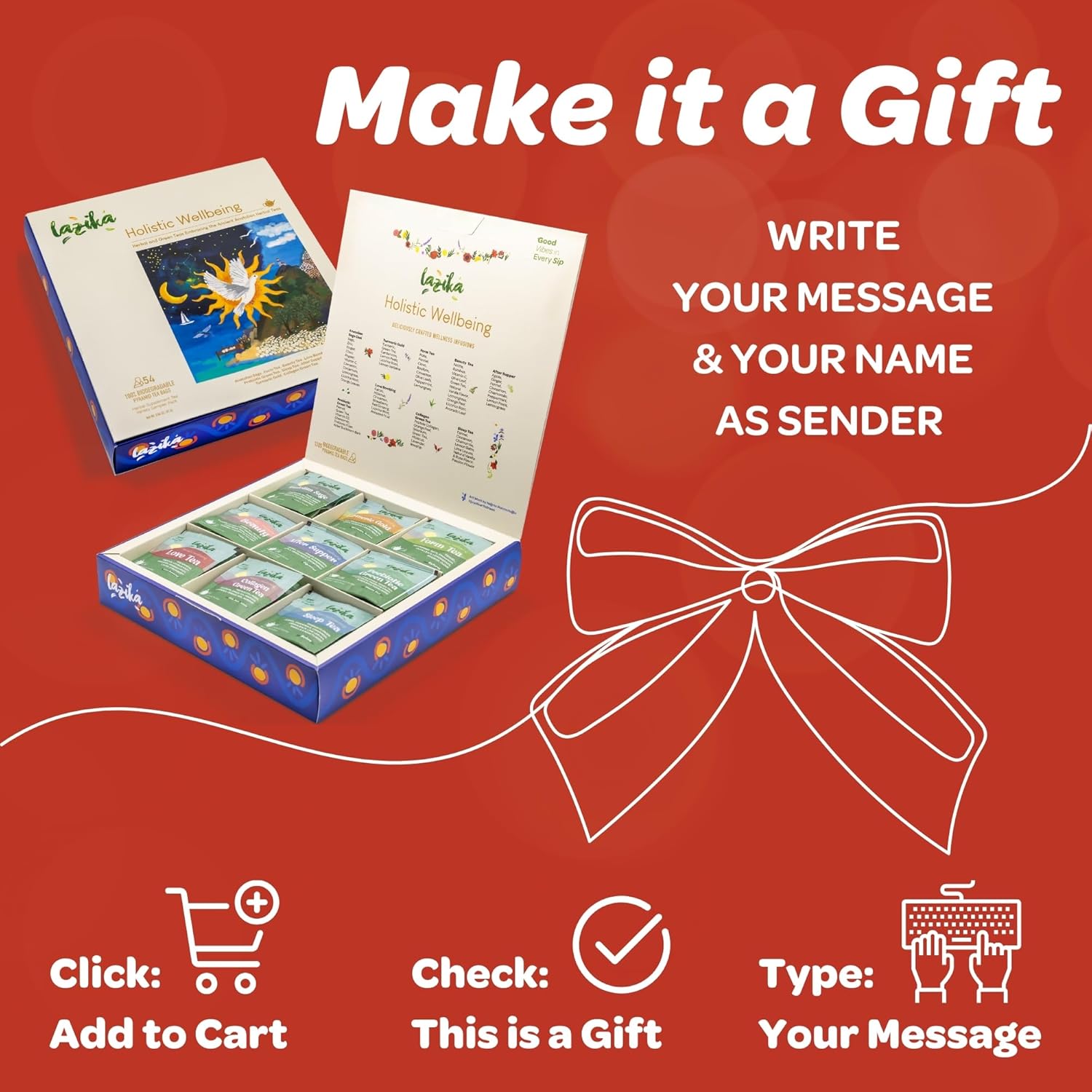 Lazika Herbal Tea Variety Pack, Holistic Wellbeing Tea Assortment, Tea Sampler Gift Set, Assorted Tea Variety Pack with Pyramid Tea Bags, Herbal Teas, Tea Gift Set, 54 Counts