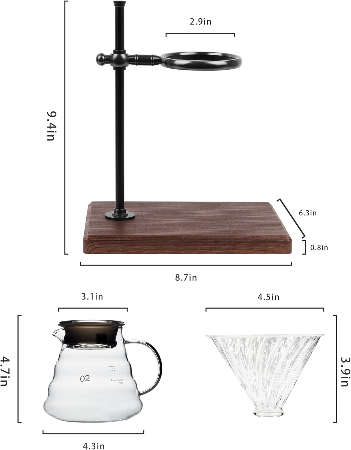 Adjustable Mechanical Stand: Pour over coffee maker set with a sophisticated and retro stainless steel handmade bracket, you can freely adjust the height according to different needs.
