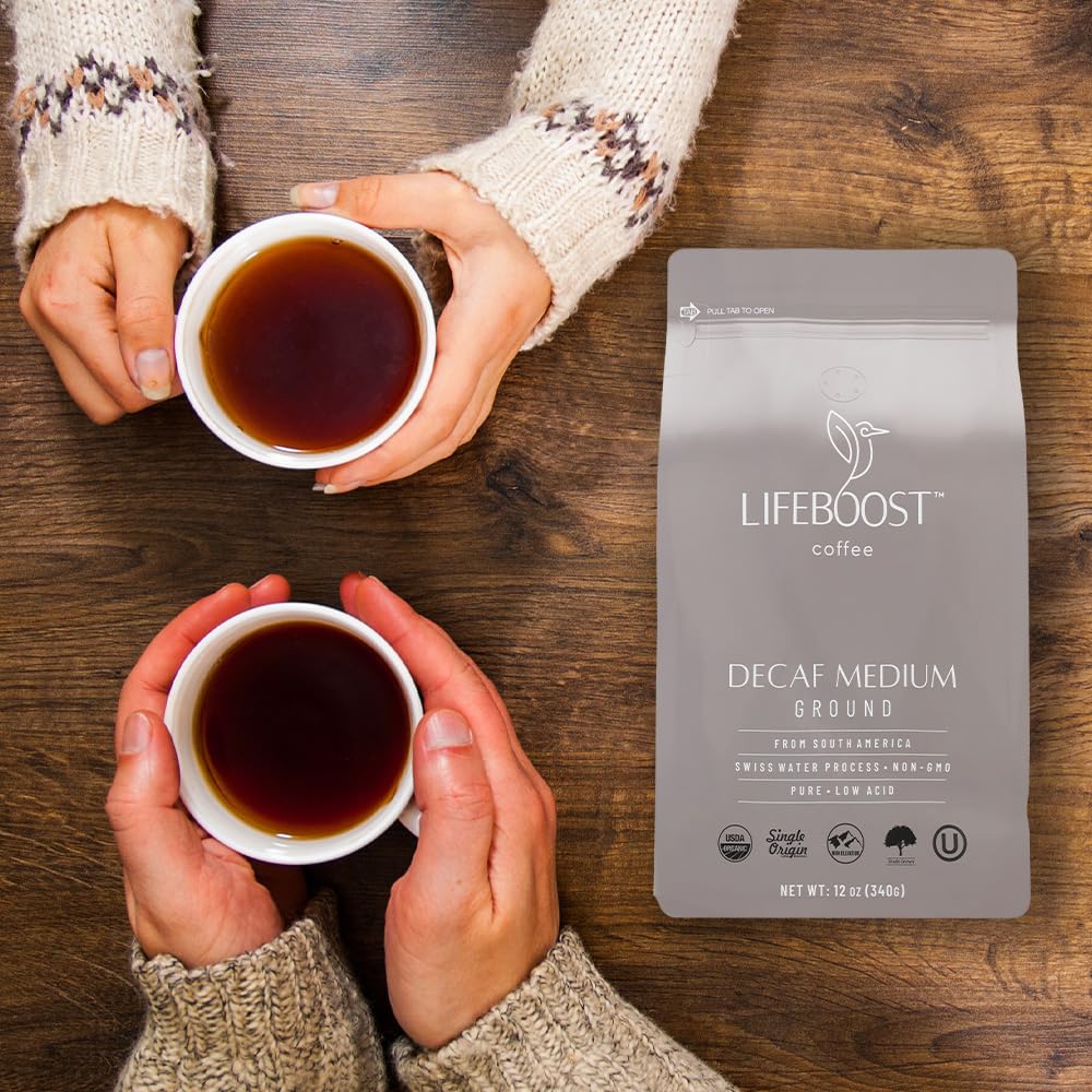 Lifeboost Coffee Medium Roast Swiss Water Decaf Coffee Ground – Low Acid Single Origin USDA Decaf Organic Coffee – Non-GMO Coffee Third Party Tested For Mycotoxins & Pesticides – 12 Ounces