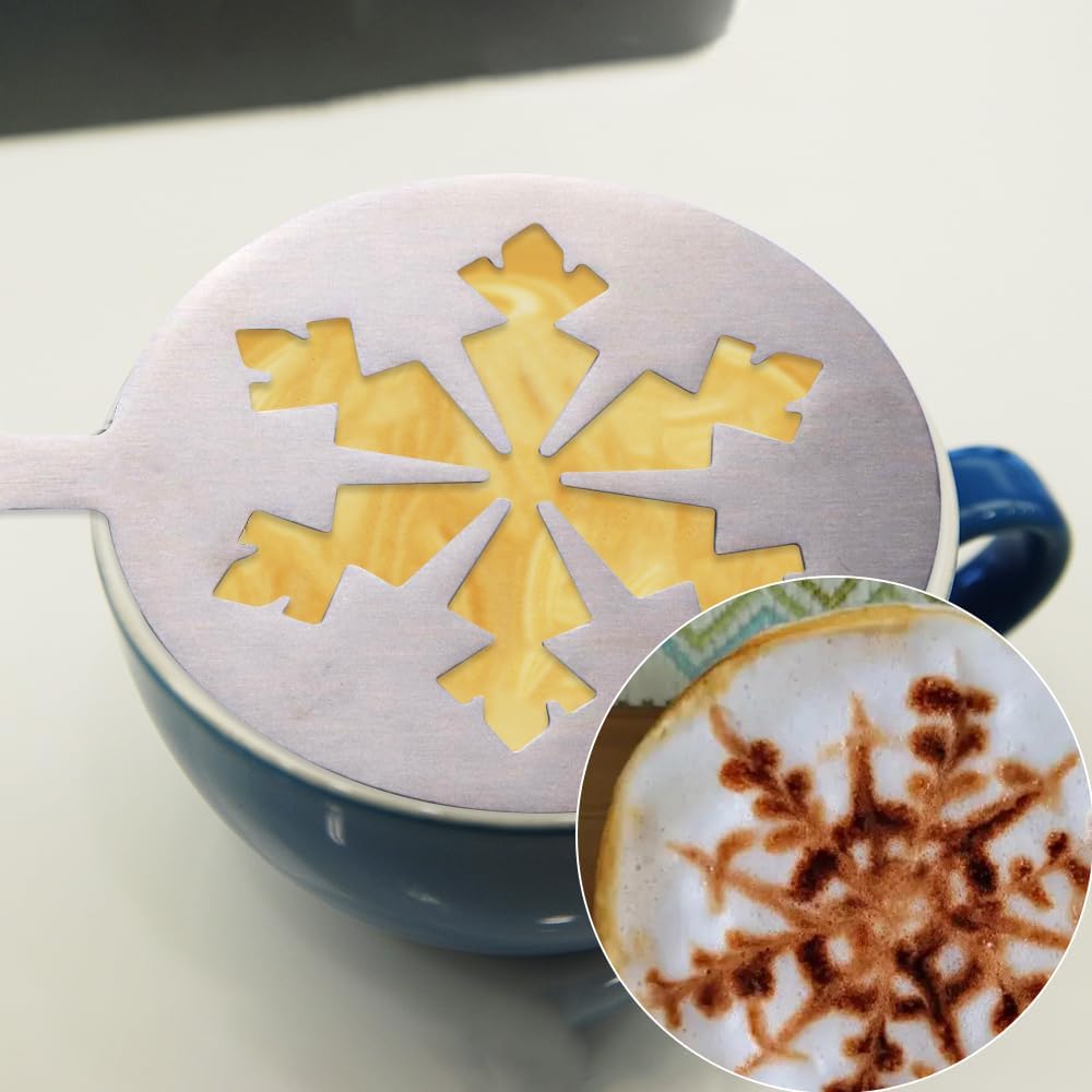 LIUZONGIN 3 Pcs Stainless Steel Coffee Decorating Stencils Cappuccino Stencil Heat-Resistant Reusable Barista Cappuccino Chocolate Templates Coffee Garland Mould Cake Decorating Tool