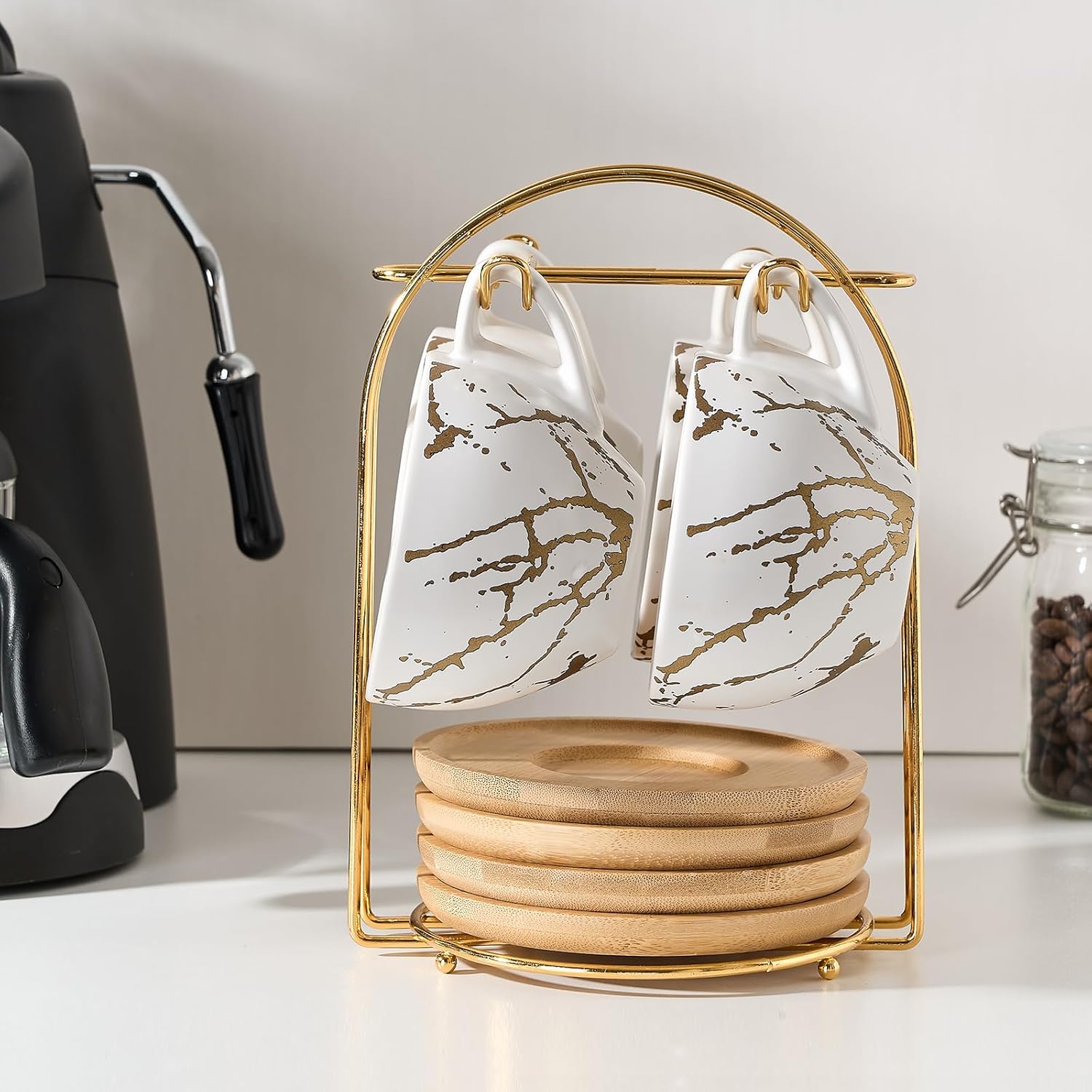 13 reviews for LUKA Ceramic Demitasse Espresso Cups Set with Saucers and Metal Stand, 8 oz Porcelain Stackable Cappuccino Cups Teacup For Tea, Espresso, Latte, Coffee, Cafe Mocha, Set of 4, White