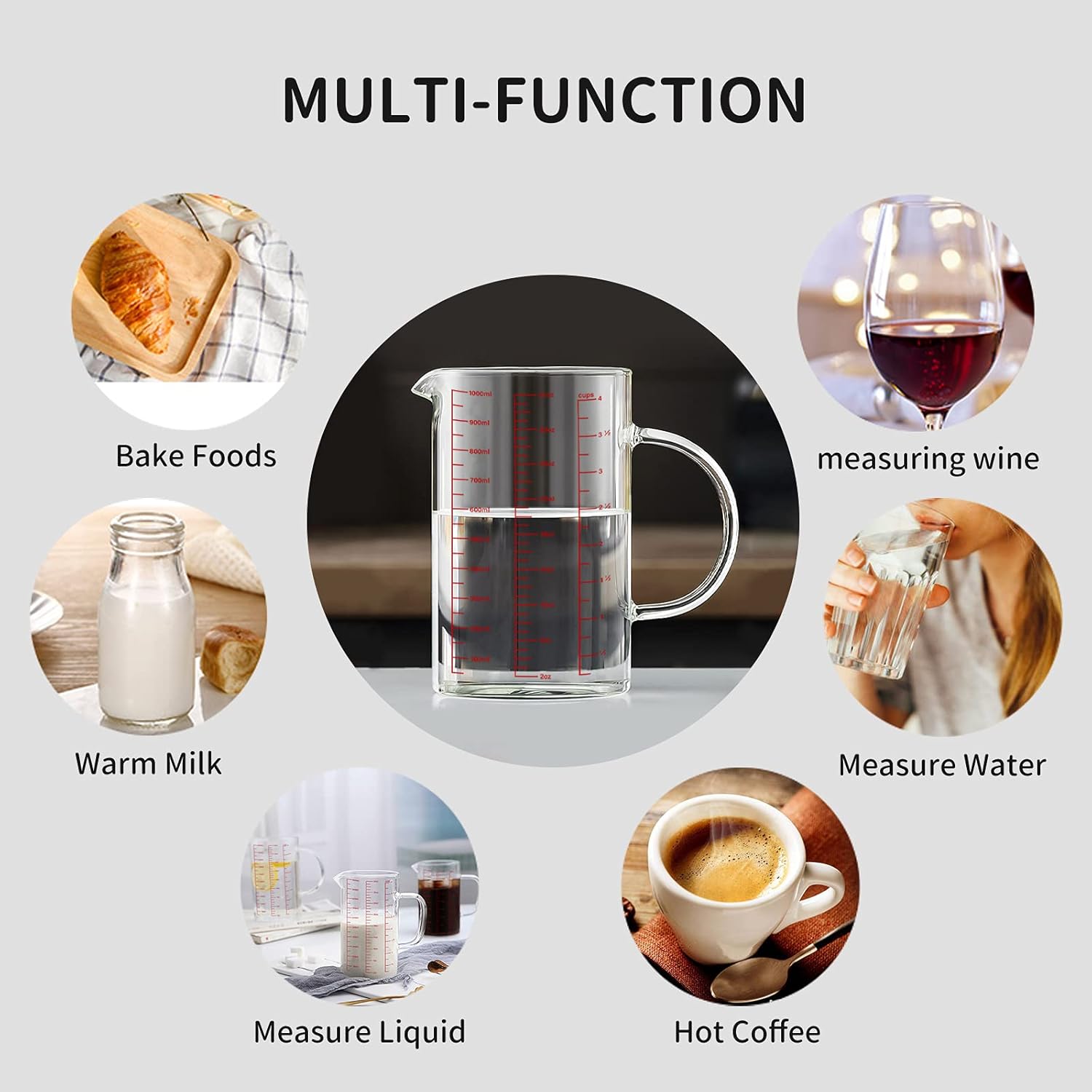 【Large Capacity】Experience culinary freedom with our 4 cup glass measuring cup with a large capacity for all your kitchen needs. Whether you’re measuring, mixing or pouring, this large measuring cup glass ensures that it will meet any of your culinary needs.