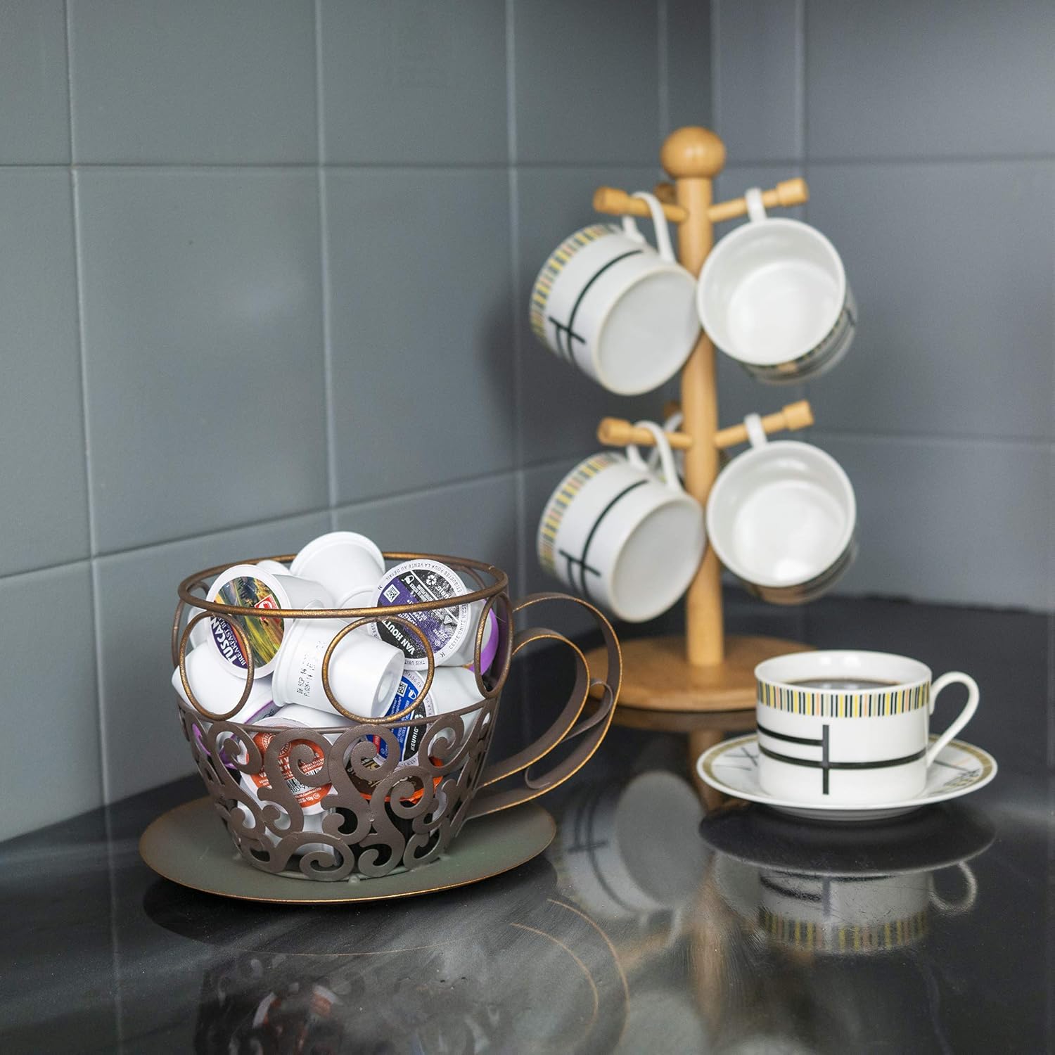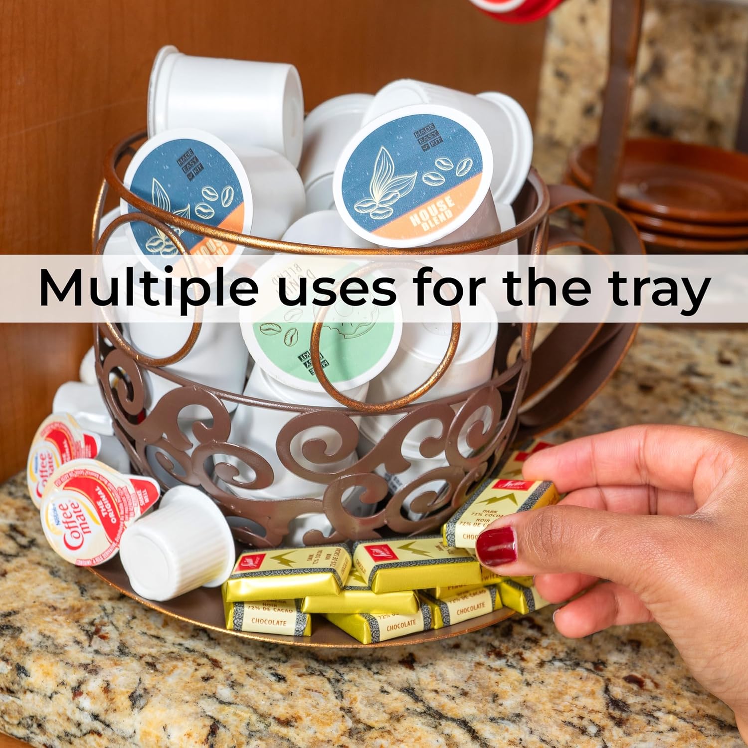 Made Easy Kit Coffee Pod Basket Organizer Practical Decoration – Compatible with Keurig K-Cup Pods & Capsules – Home Cafe Bar Decor Useful Kitchen Countertop Freestanding (Cup & Tray)