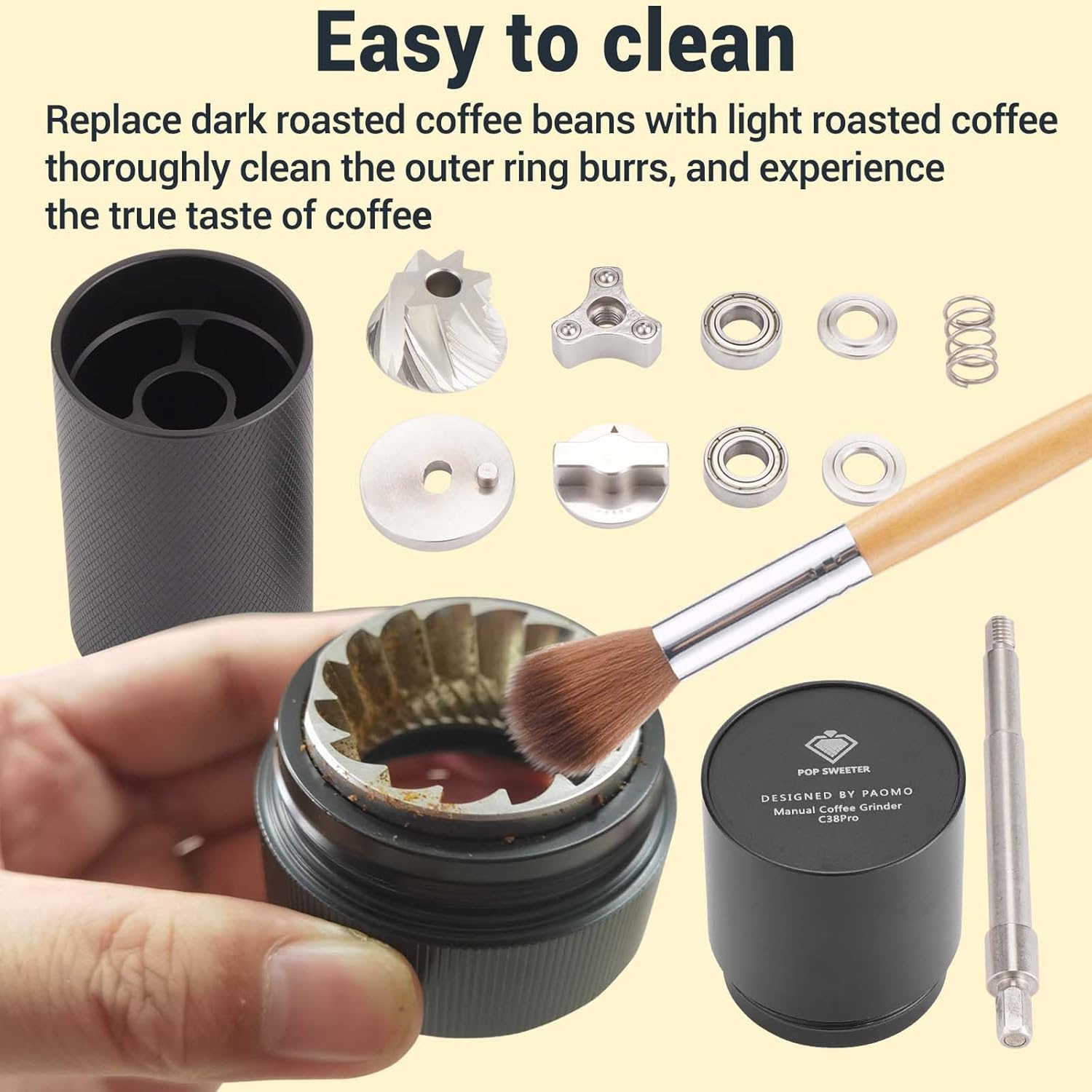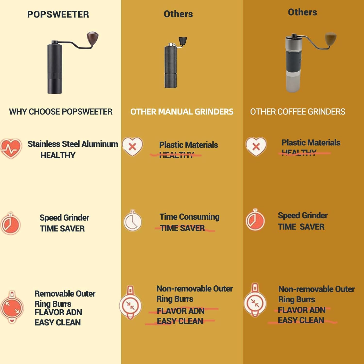 POPSWEETER C38 PRO Manual Coffee Grinder Stainless Steel Conical Burr Coffee Bean Grinder, Made of Aluminum and Stainless Steel, Internal Digital Adjustable Precision Settings, Faster Grinding Efficiency, Great for Aero Press Drip Coffee, chemex Espresso Coffee, suitable for Arabica Robusta Starbucks Intelligentsia Kicking Horse