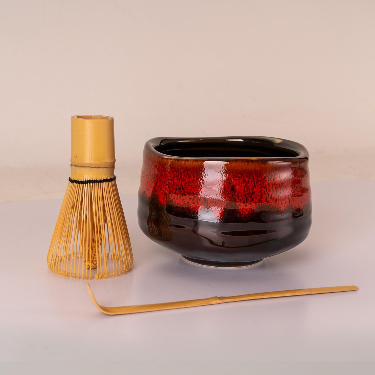 [EASY MAINTENANCE] Our tea bowl’s interior is glazed, not only enhancing its aesthetics but also making it easier to clean. This lead-free glazing ensures safety while preventing tea residue from lingering, ensuring a pristine and safe experience. Bowl is also microwave and dishwasher safe. Bamboo whisk and spoon can easily be cleaned by rinsing under running water.