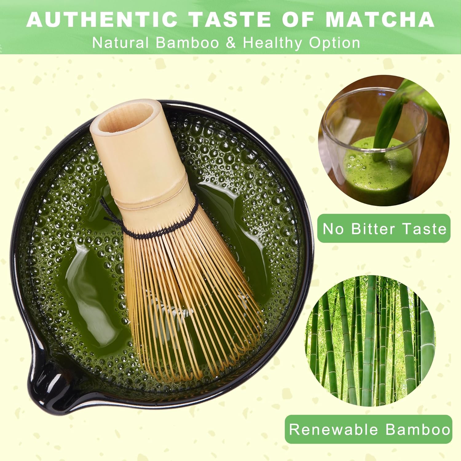 High Quality & Food Safe: Our Matcha mixer are handmade from natural renewable golden bamboo with around 100 finely tines.They are finished with vegetable oil to enhance the longevity of the bamboo Matcha whisk,and easy cleaning.