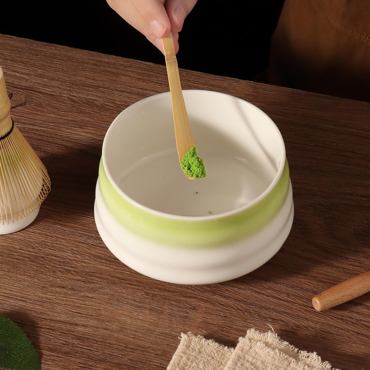 Matcha Whisk Set – Matcha Bowl and Bamboo Matcha Whisk, Scoop, Spoon, Sifter, Whisk Holder, 6pcs Perfect Matcha Starter Kit for Matcha Tea Ceremony (C Green/White)