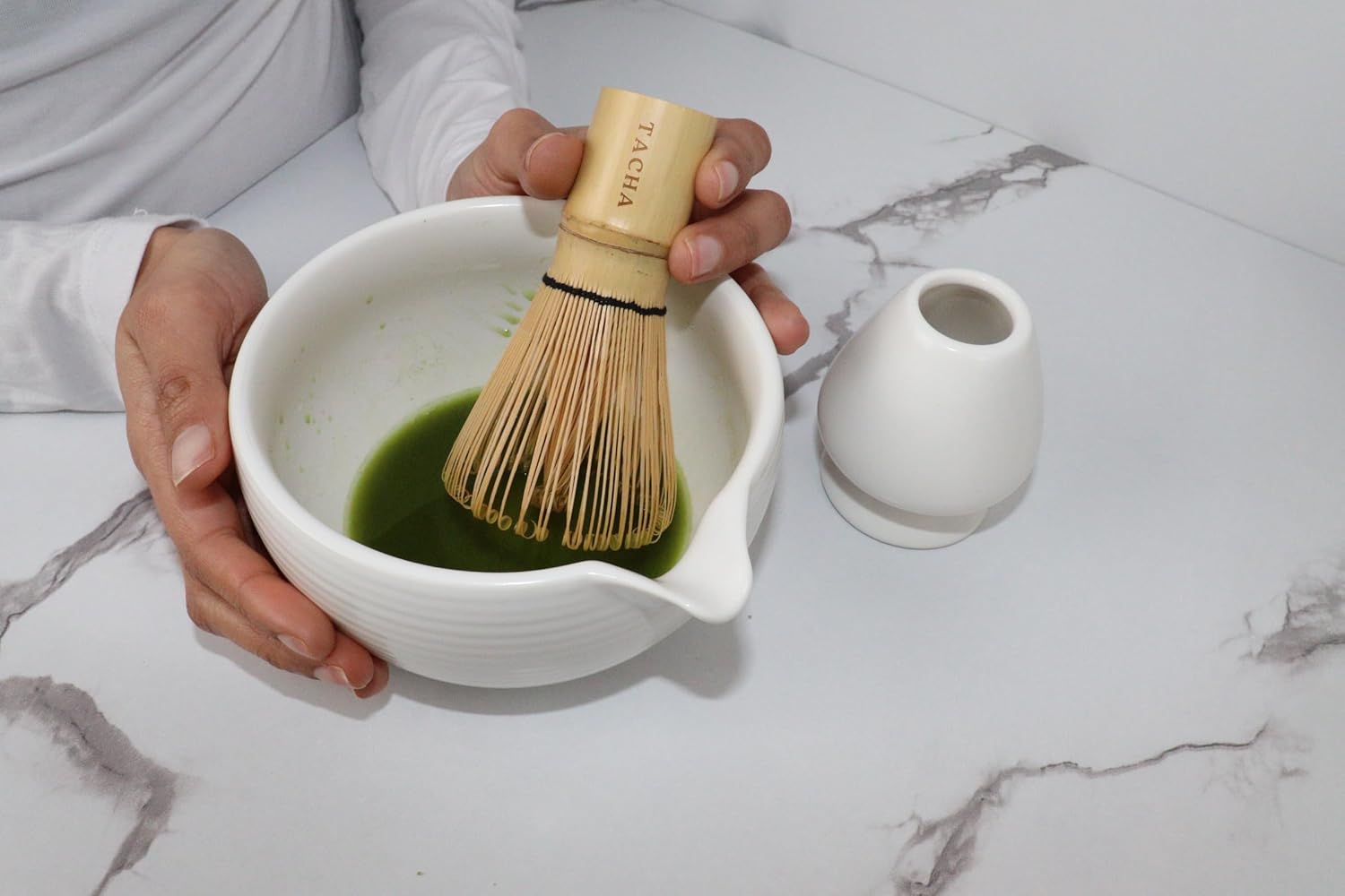 & : The Japanese matcha gift set is handmade and built to last. Our premium matcha starter kit comes with everything a matcha enthusiast could need to make the ideal cup of Matcha tea. Our 100-pronged bamboo whisk was created especially for a frothy, smooth cup of tea. Our Matcha spoon and matcha whisk is made of natural bamboo. Our Matcha bowl and matcha whisk holder is made of high quality ceramic.