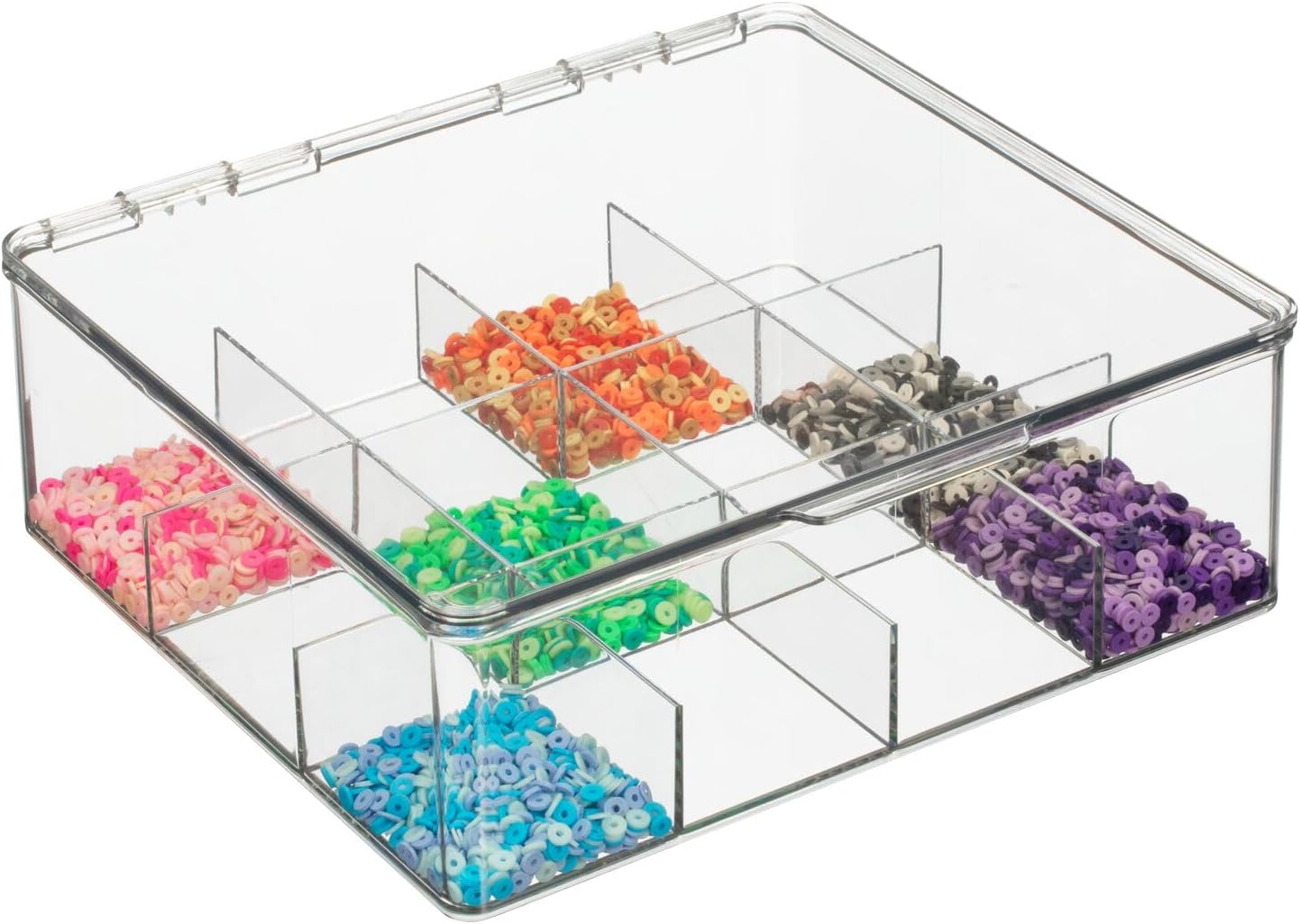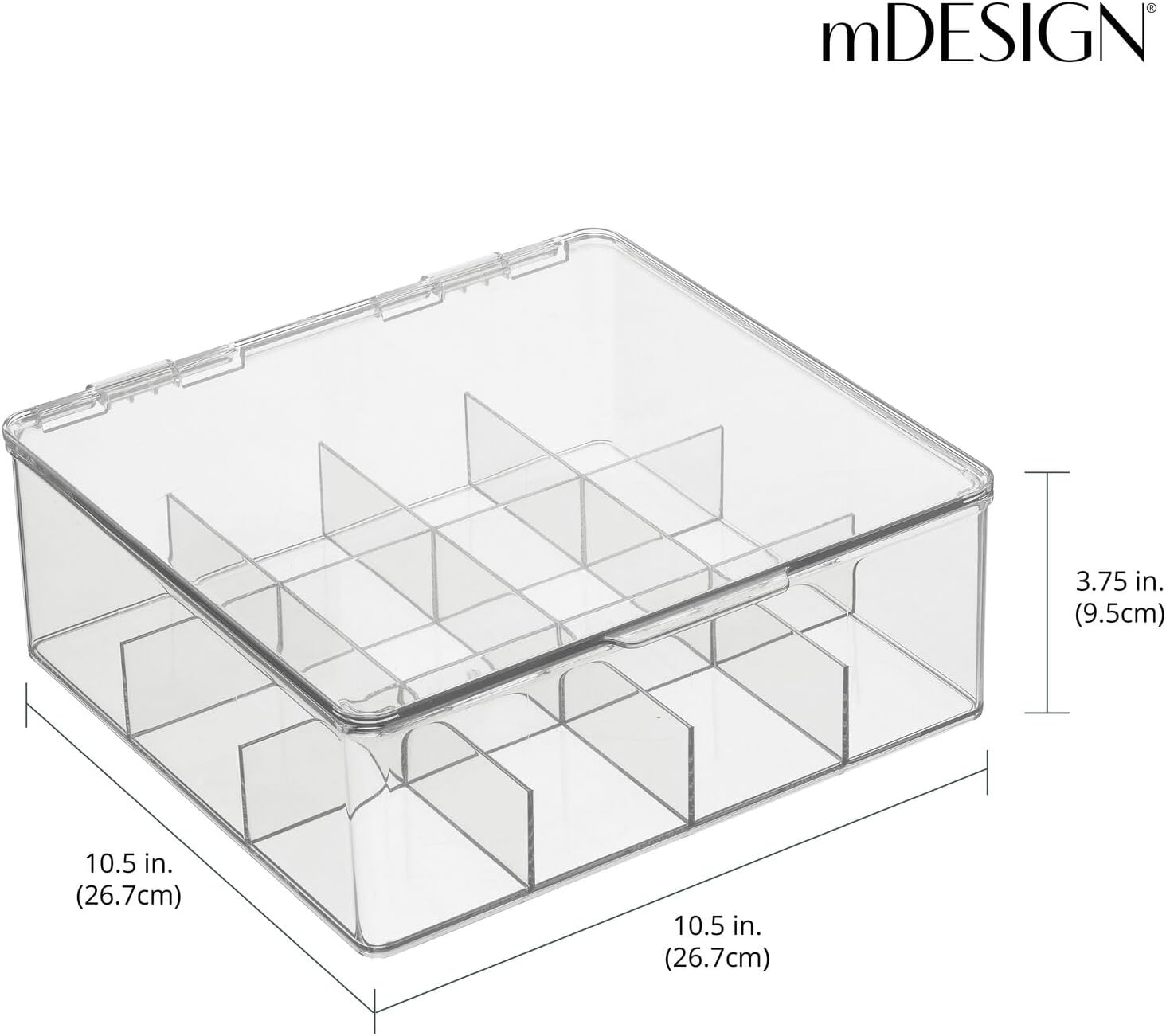 mDesign Plastic Kitchen Organiser — Practical Storage Box with 12 Compartments and Hinged Lid — Pantry Storage Box with Lid for Tea, Coffee, Spices and Other Foodstuffs — Clear