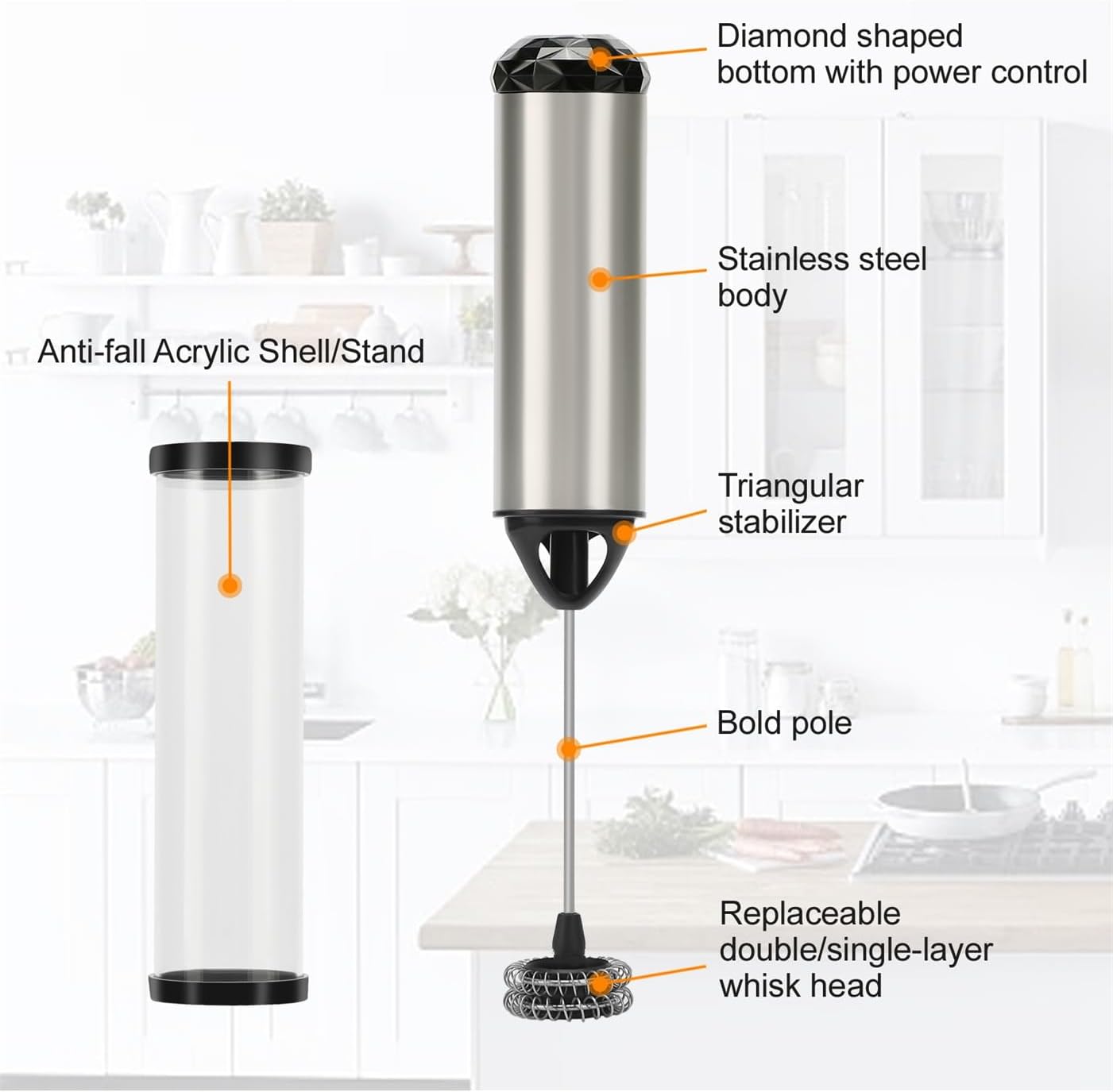 Stable Anti-Shake Operation – The electric whisk base features a patented three-dimensional triangle stabilization structure, coupled with a bold whisk pole, to significantly reduce common frothing jitters and ensure smooth, stable operation.