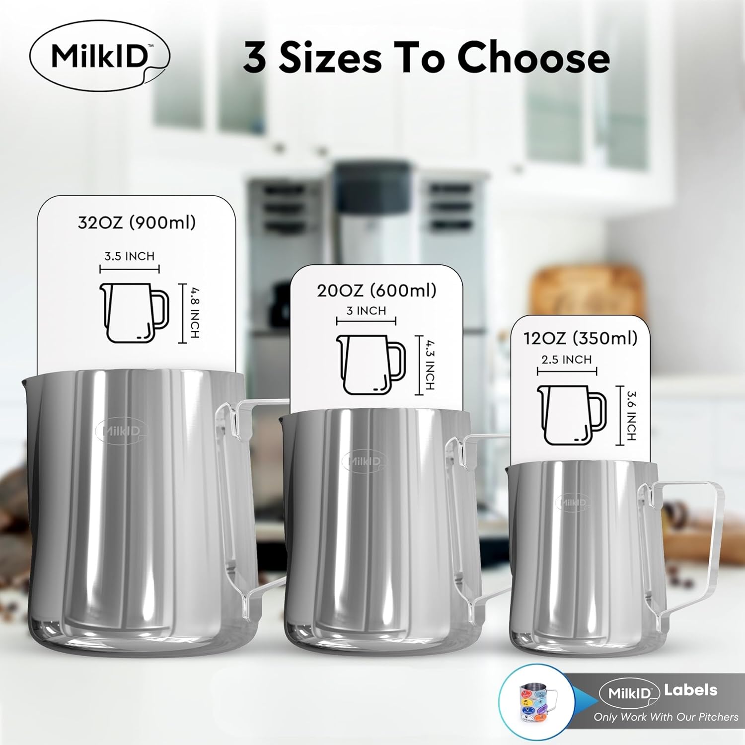 *UNIQUE LABELLING SYSTEM*: Barista Milk Pitcher & Labeling system ensures Accurate Milk Identification, Preventing Cross-Contamination: Essential espresso machine accessories and coffee accessories for Coffee Bar & Coffee Shop.