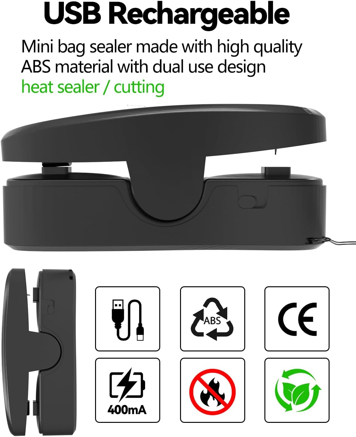 【Rechargeable Use】Ditching disposable batteries and powered by a USB Type-C cable, this eco-friendly bag sealer can seal around 300 bags on a single charge, ensuring you always have it ready when needed.