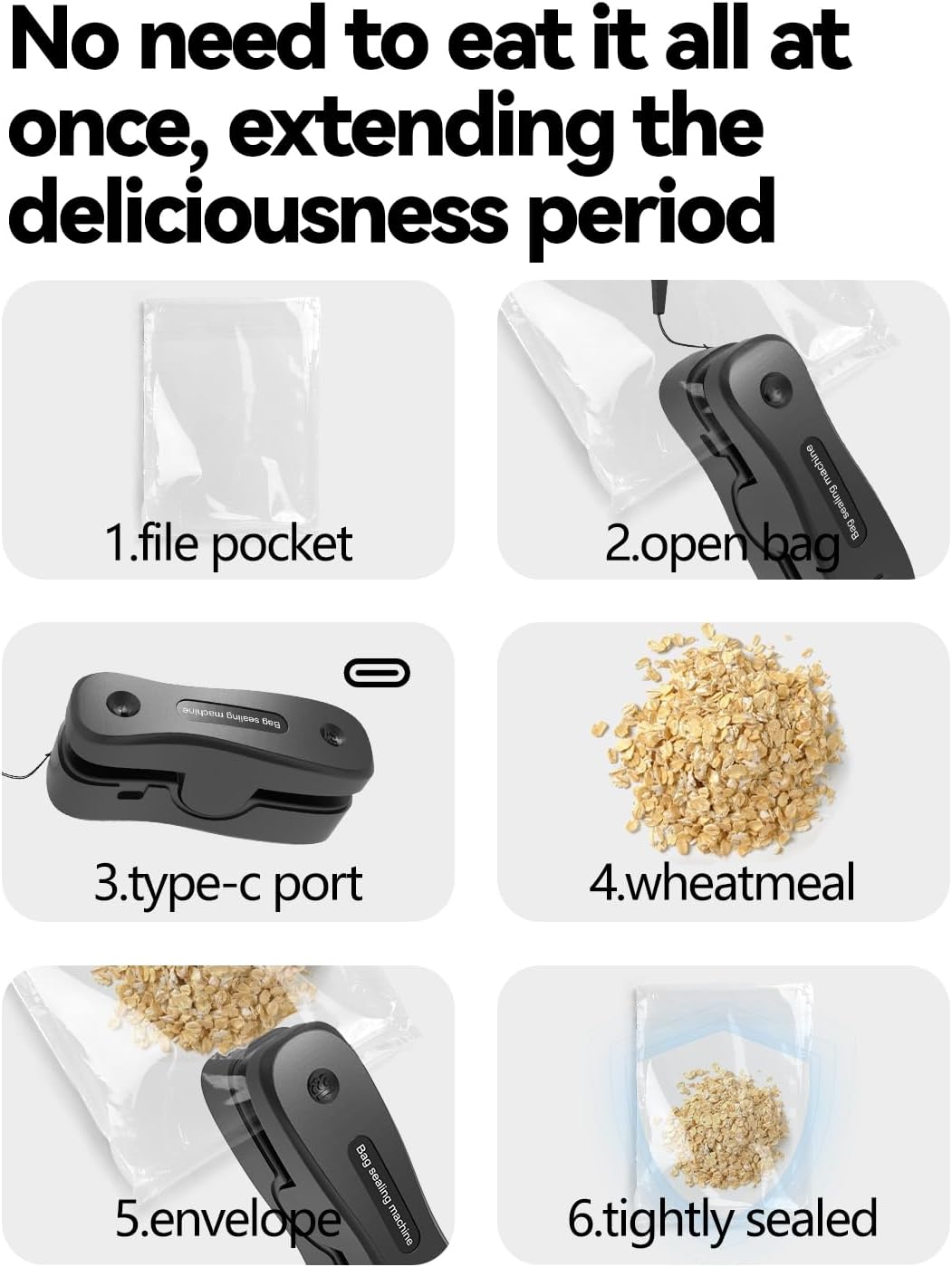 【Keep Food Fresh】Seal your chip bags, fruit bags, cookie bags, or candy bags in seconds with this mini bag sealer. It can preserve the quality and flavor of your food, keeping it fresher for longer and reducing waste.