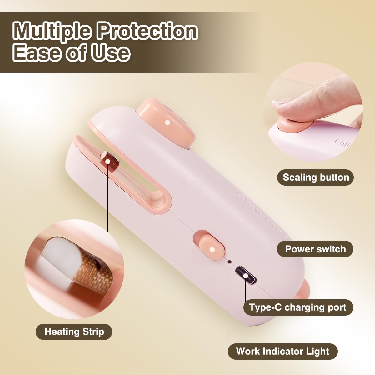 【SAFE AND EASY TO USE】 The Crimper tool for chip bags is hidden inside the opening and won’t come into contact with your fingers. You just need to place the bag in the middle, clamp the bag opening, and slowly and evenly slide along the edge of the bag to seal it. It is recommended to use PP/PE/PVC bags with a thickness of ≥ 0.1mm. Ultra thin plastics such as cling film are not suitable as they will melt directly.