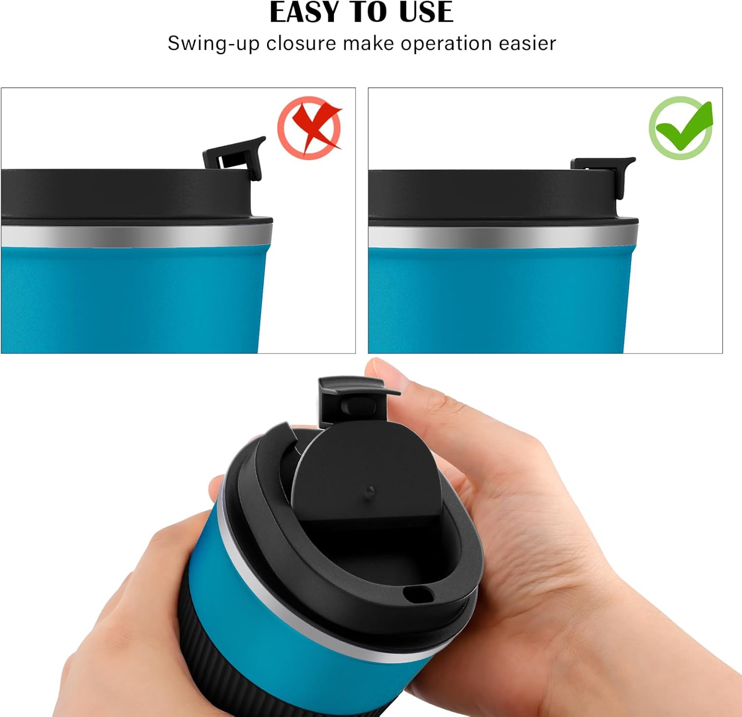 [ Easy to Drink with One Hand ]: Travel coffee mug includes an eco-friendly flap opening that makes drinking one-handed a breeze. And the surface of the lid also has a straw hole design, which allows you to drink straight from the cup or use a straw. Comes with a silicone cover on the body, it can help you hold it comfortably.