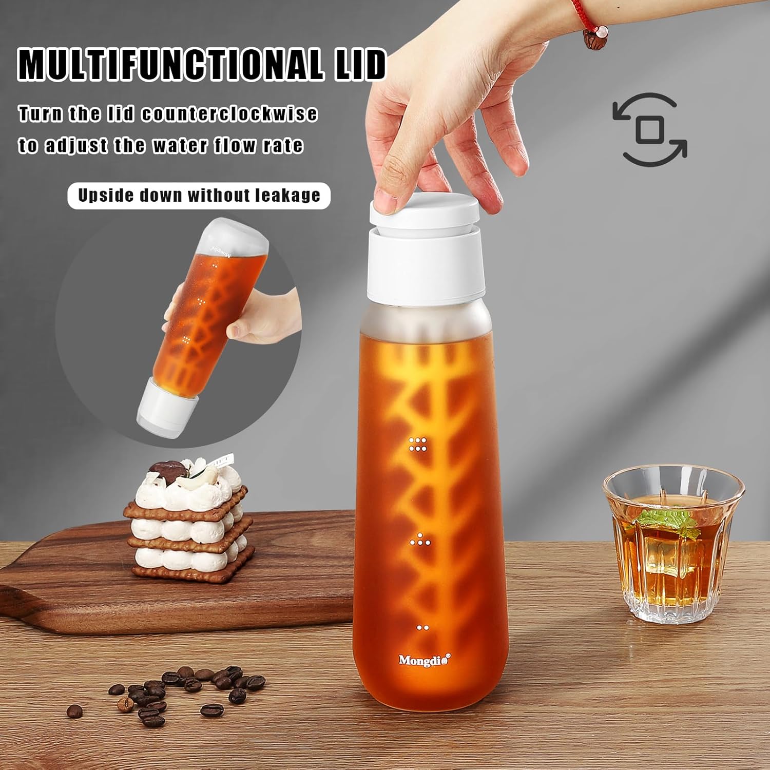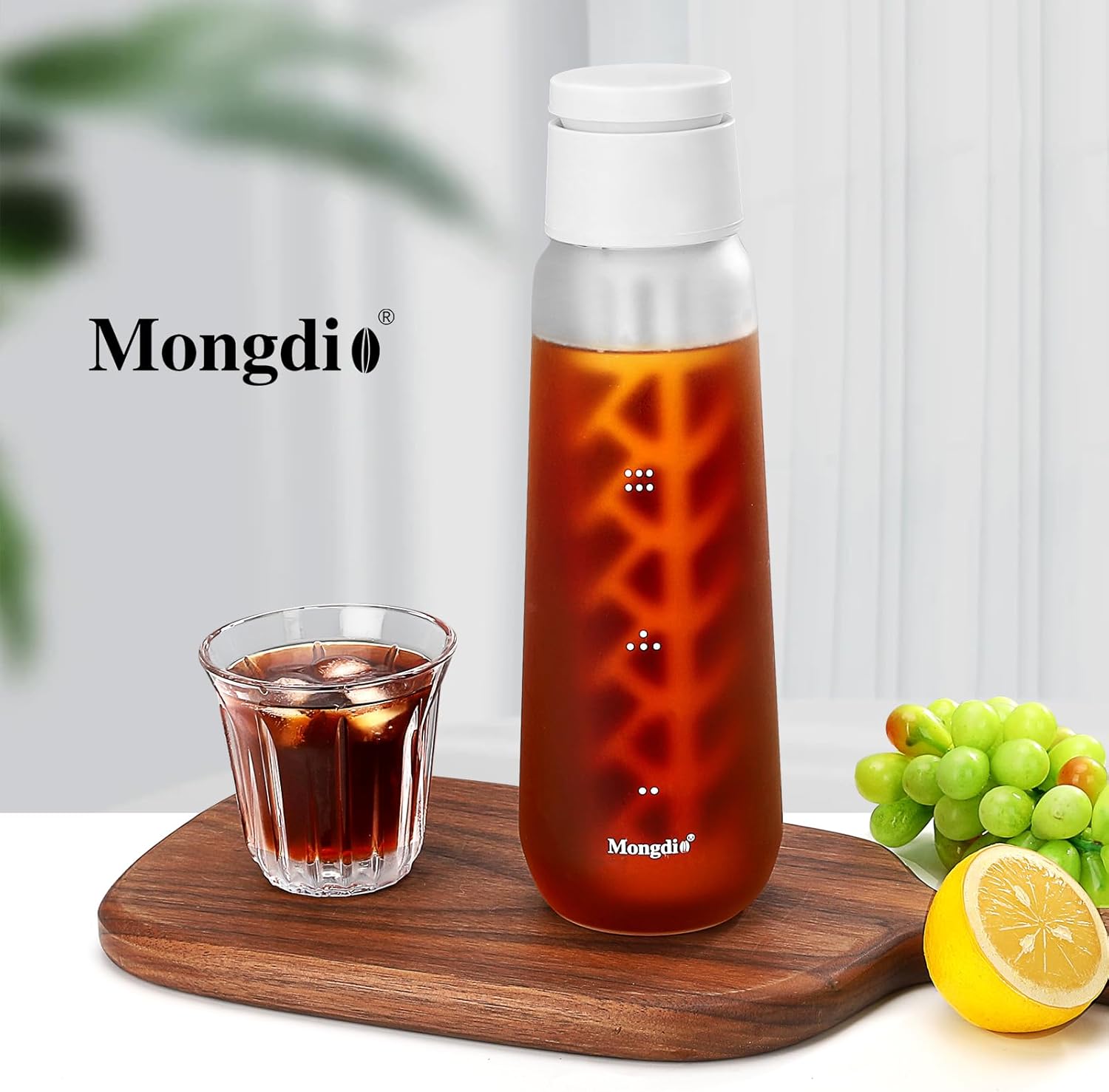 Mongdio Portable Cold Brew Coffee Maker, 25oz Durable Frosted Glass Cold Brew Pitcher with 400 Mesh Filter and Leak-Proof Lid, Homemade Iced Coffee & Tea Lemonade Container – 750ml