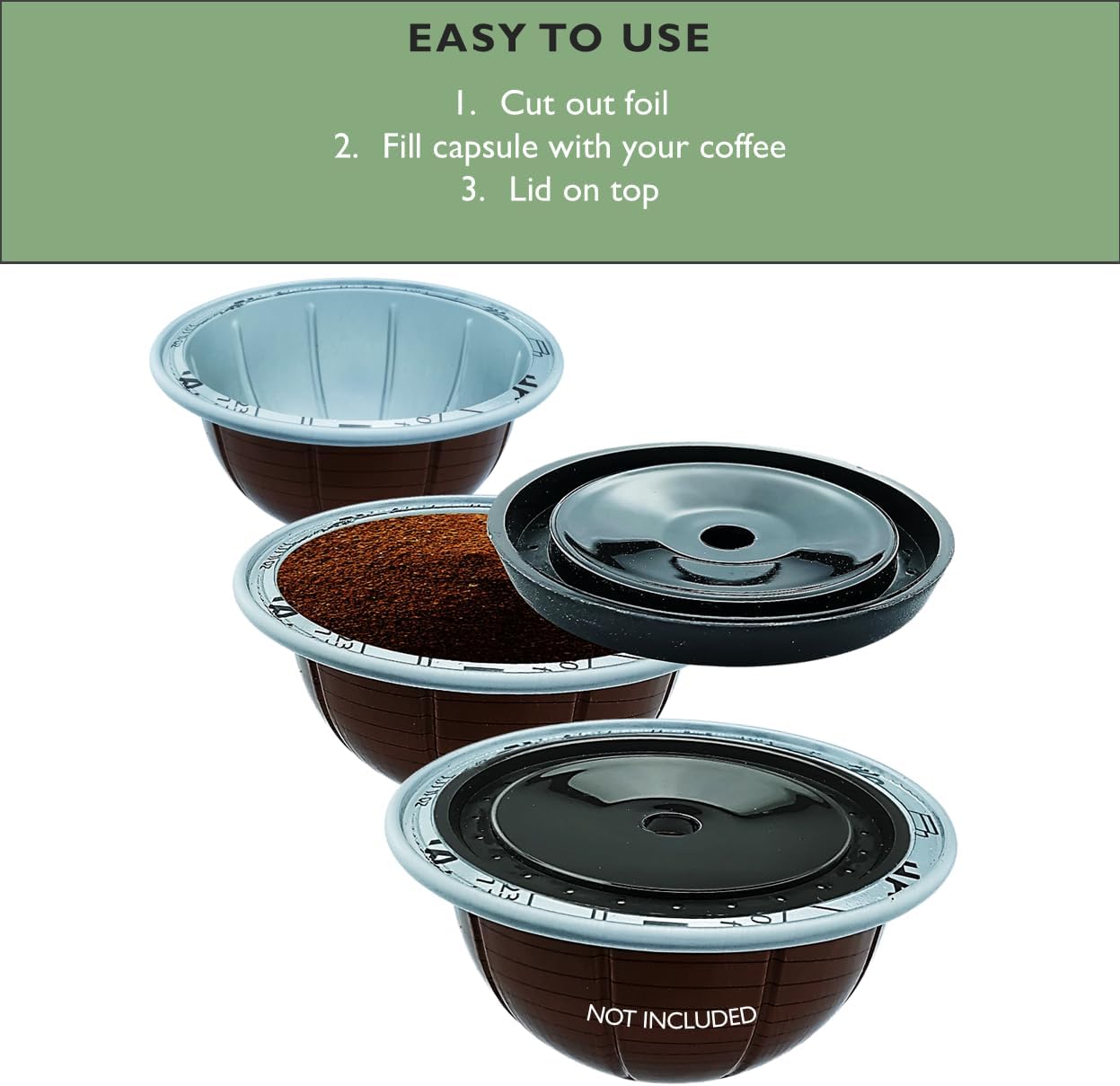 Please note, no bottom of the capsule included, you are re-using the existing Nespresso Vertuo aluminum part of a disposable capsule – up to 500 times